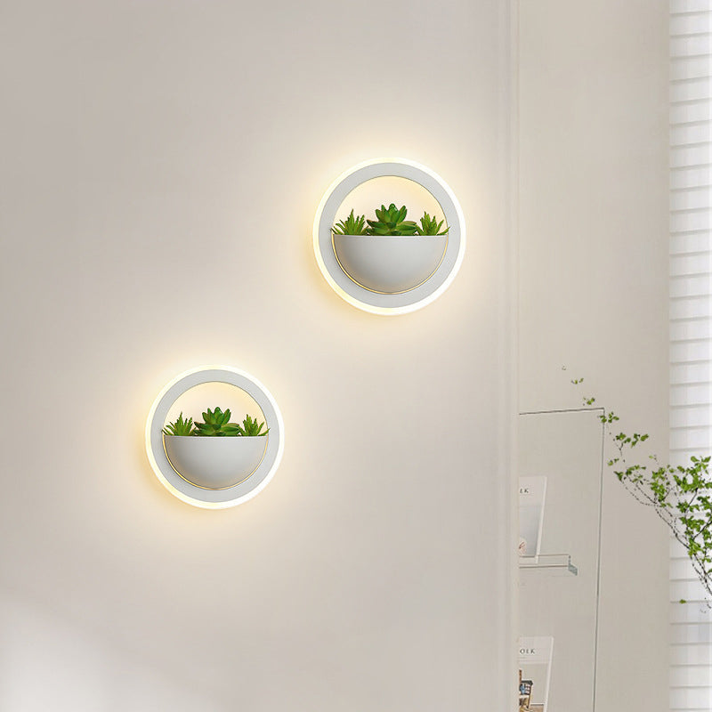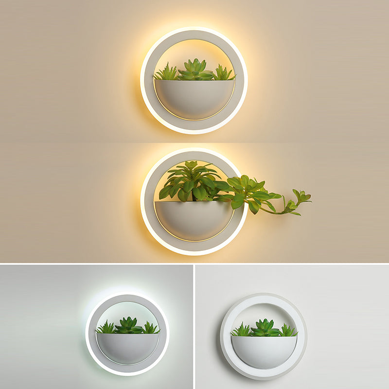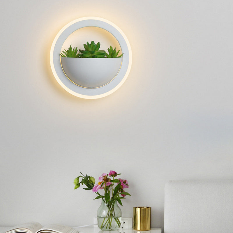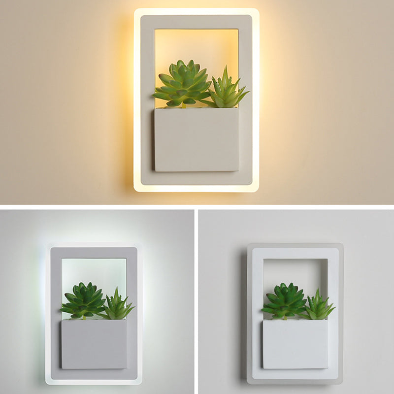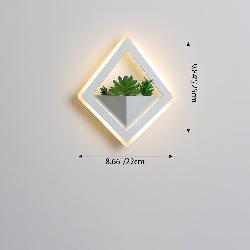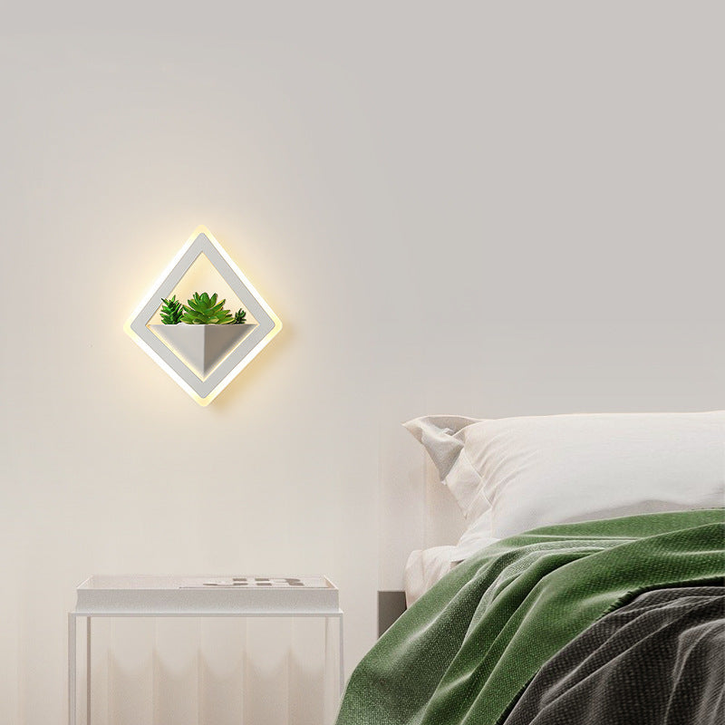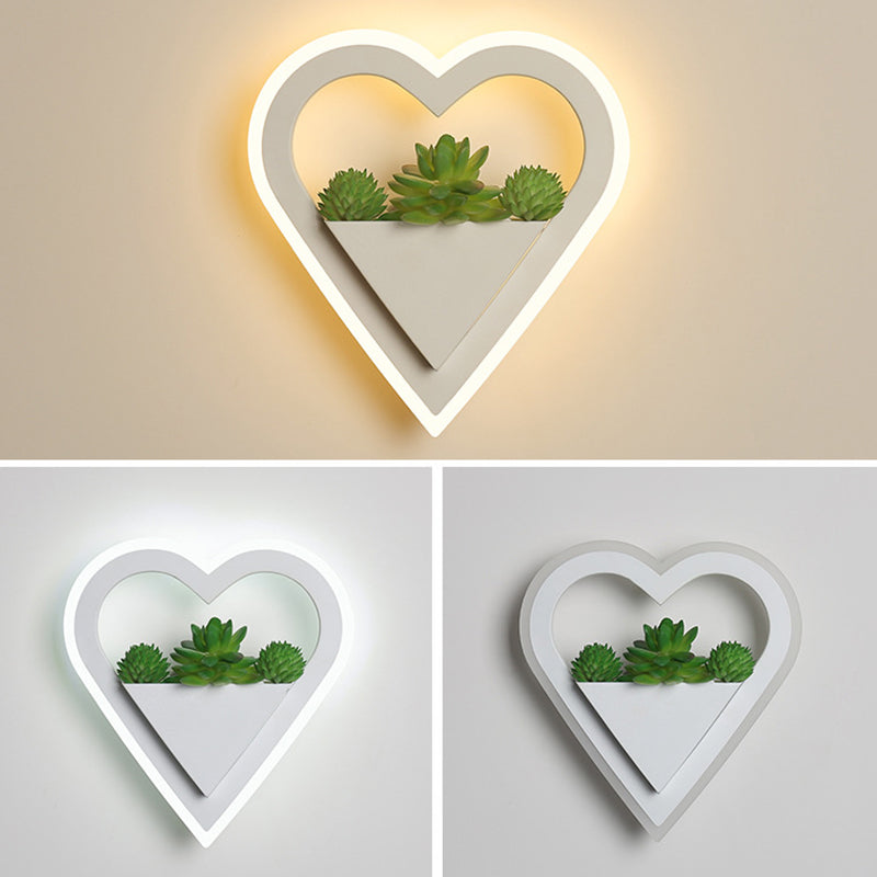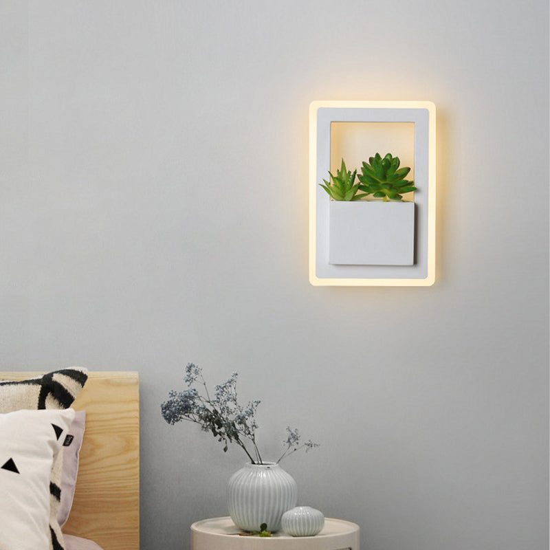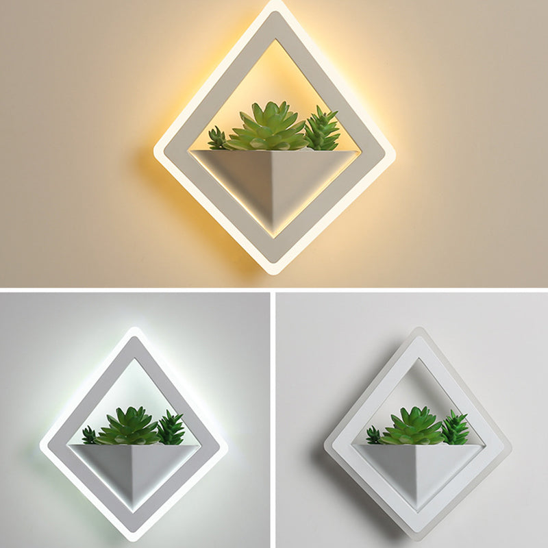 Modern Minimalist Simulation Plant Round Triangle Rectangle Heart Iron Acrylic Wall Sconce Lamp For Bedroom