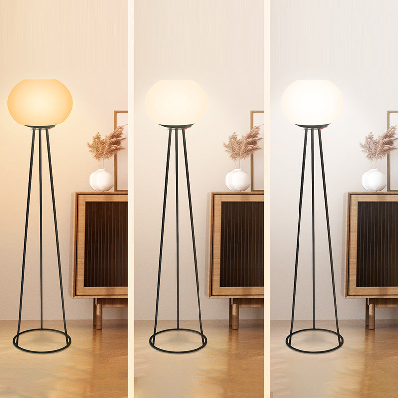 Modern Minimalist Solar Oval Tripod Round Base Iron PE LED Standing Floor Lamp For Outdoor Patio