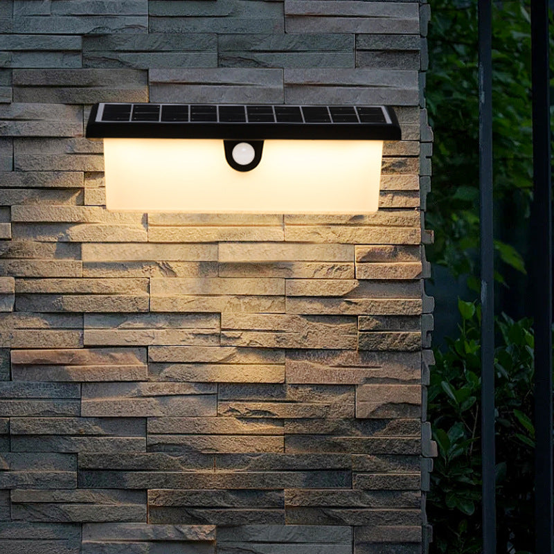 Modern Minimalist Solar Waterproof Rectangle PC ABS LED Outdoor Wall Sconce Lamp For Garden