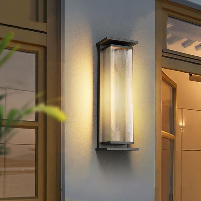 Modern Minimalist Solar Waterproof Rectangle Stripe Stainless Steel PC LED Outdoor Wall Sconce Lamp For Garden