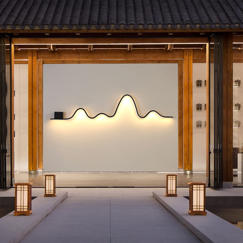 Modern Minimalist Solar Waterproof Strip Mountain Iron Aluminium Silica LED Wall Sconce Lamp For Outdoor Patio