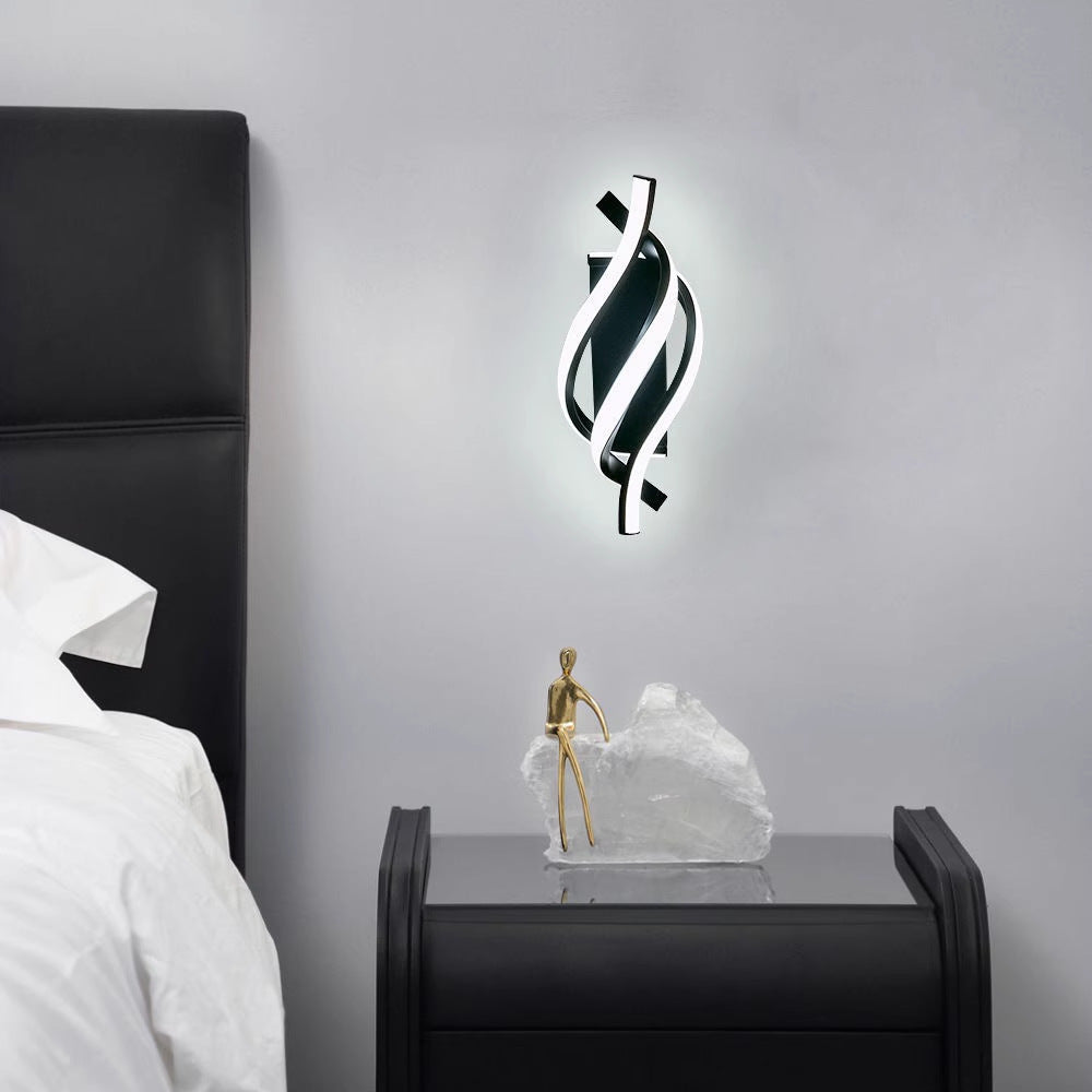 Modern Minimalist Spiral Line Aluminium Acrylic Silicone LED Wall Sconce Lamp For Bedroom