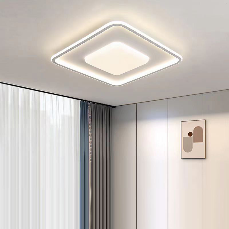 Modern Minimalist Square Acrylic Iron Aluminum Silicone LED Flush Mount Ceiling Light For Bedroom