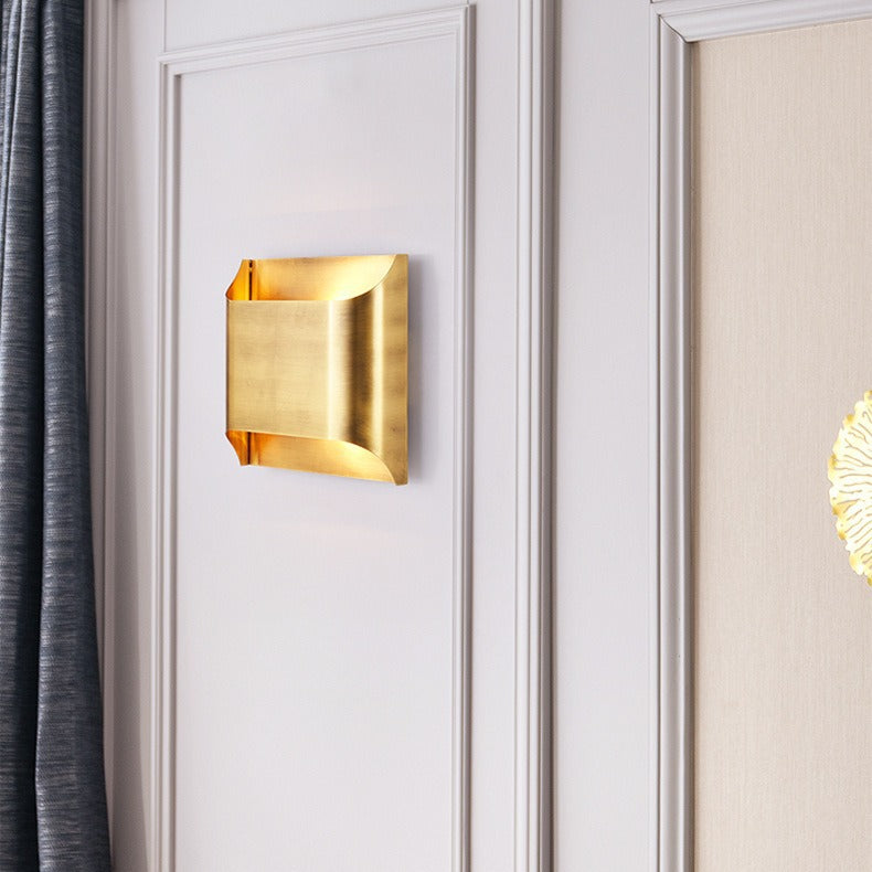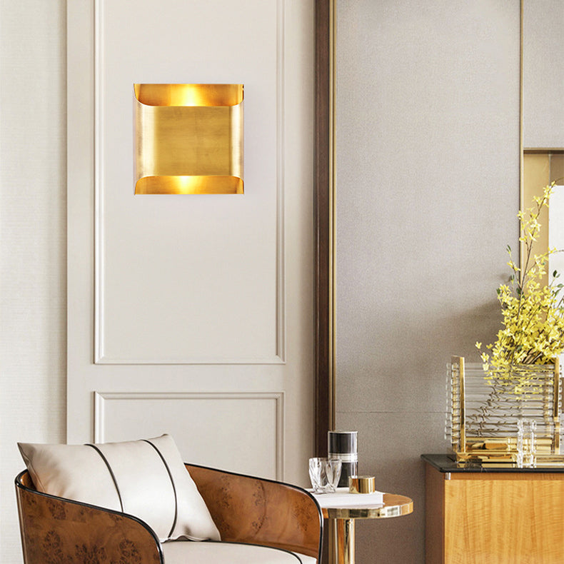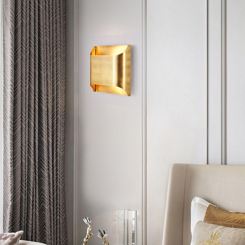 Modern Minimalist Square Copper 2-Light Wall Sconce Lamp For Bedroom