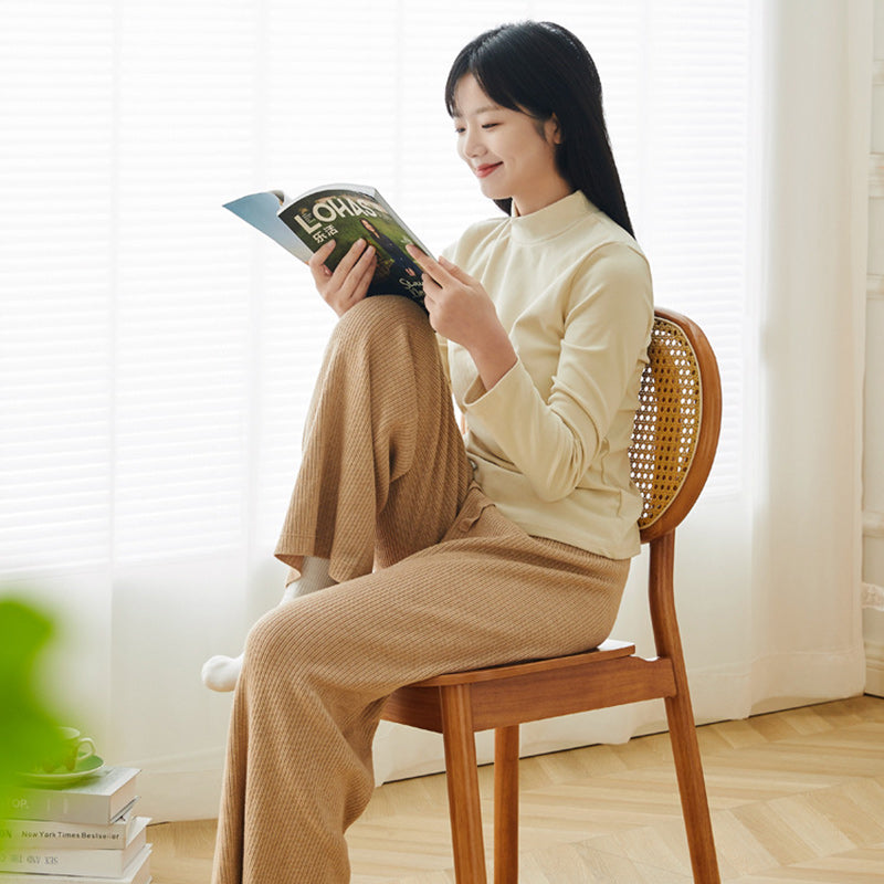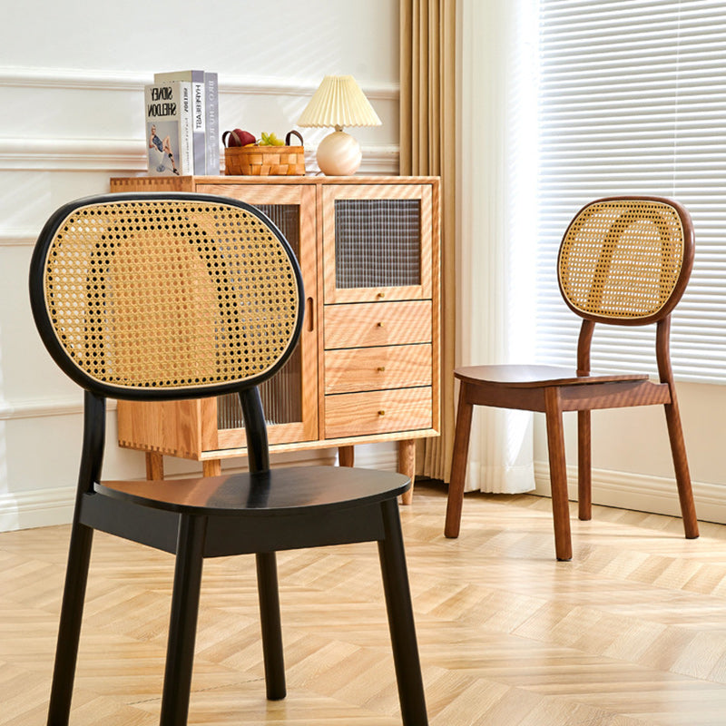 Modern Minimalist Square Curved Wood Rattan Dining Chair Backrest For Dining Room