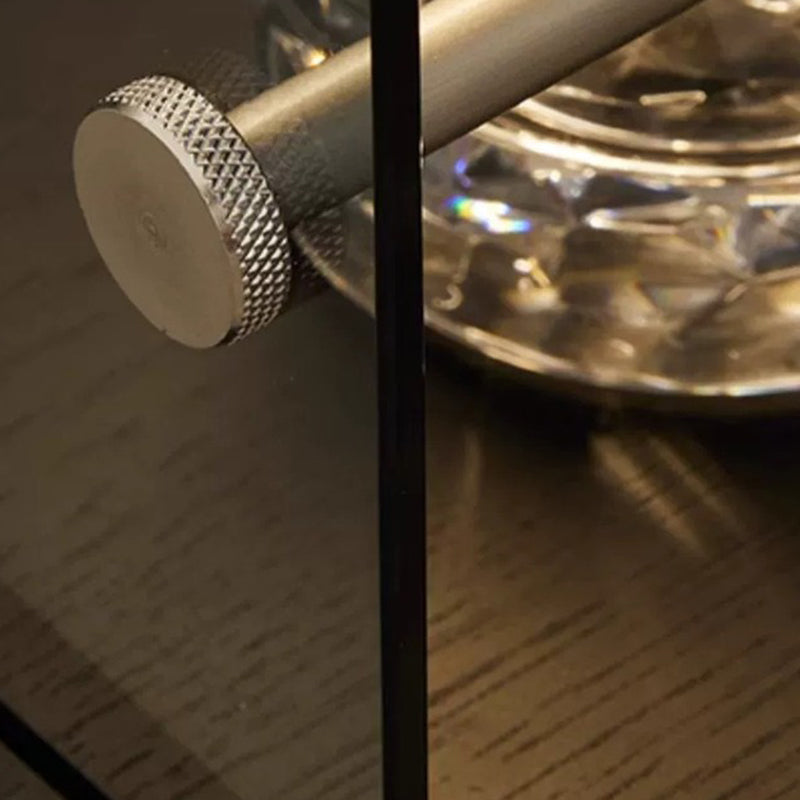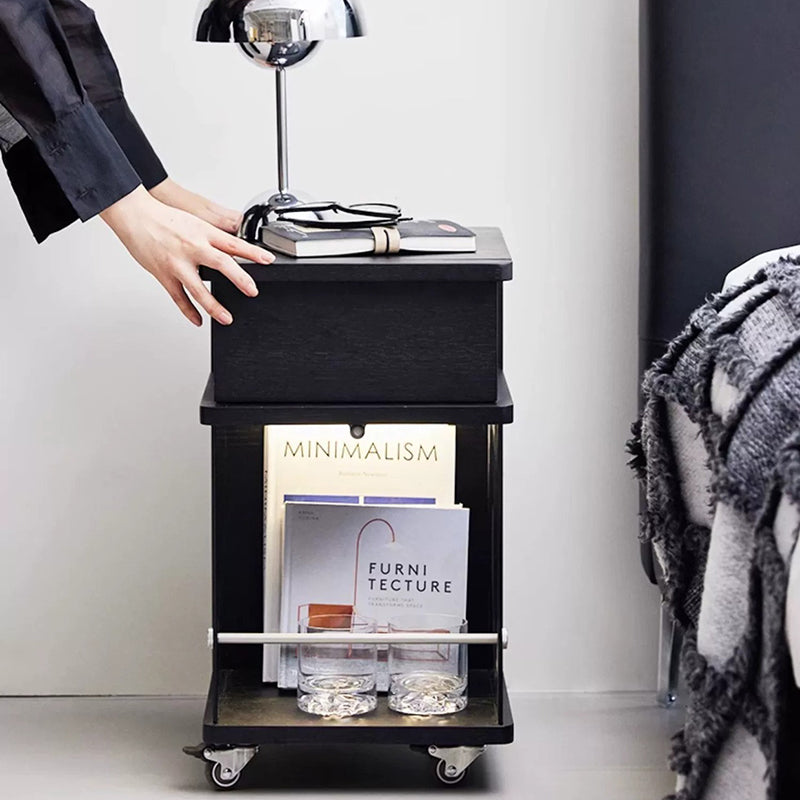 Modern Minimalist Square Frame Solid Wood Glass Stainless Steel Nightstand 1-Cabinet For Bedroom
