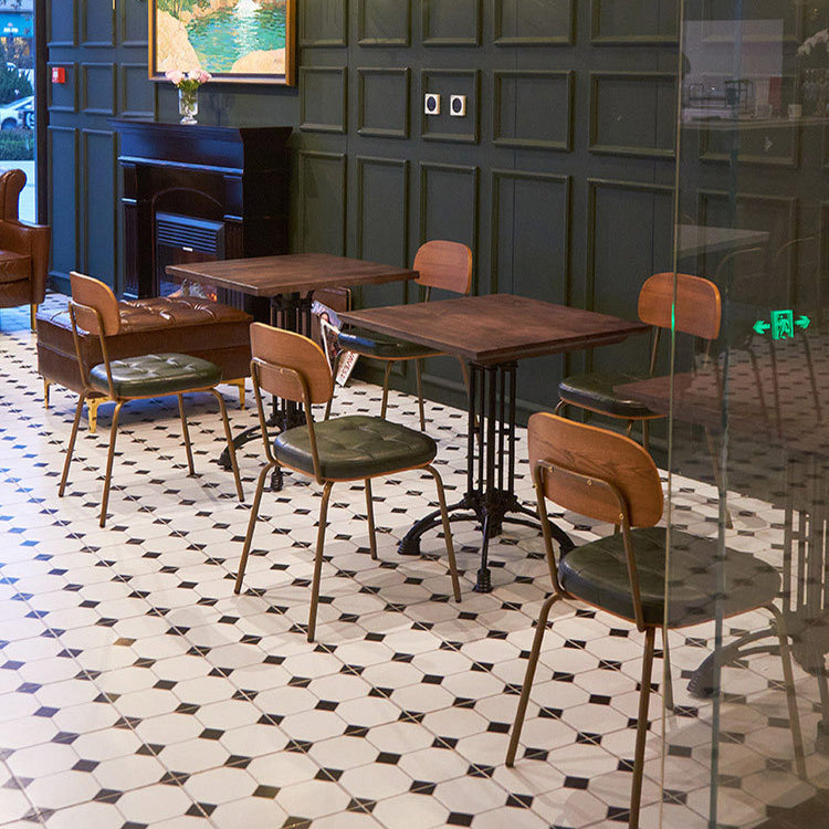 Modern Minimalist Square Metal PU Leather Four Legs Dining Chair Backrest For Dining Room