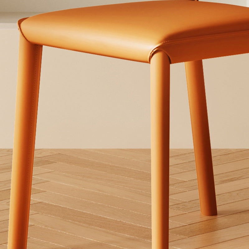Modern Minimalist Square Oval Back Genuine Leather Carbon Steel Dining Chair For Dining Room