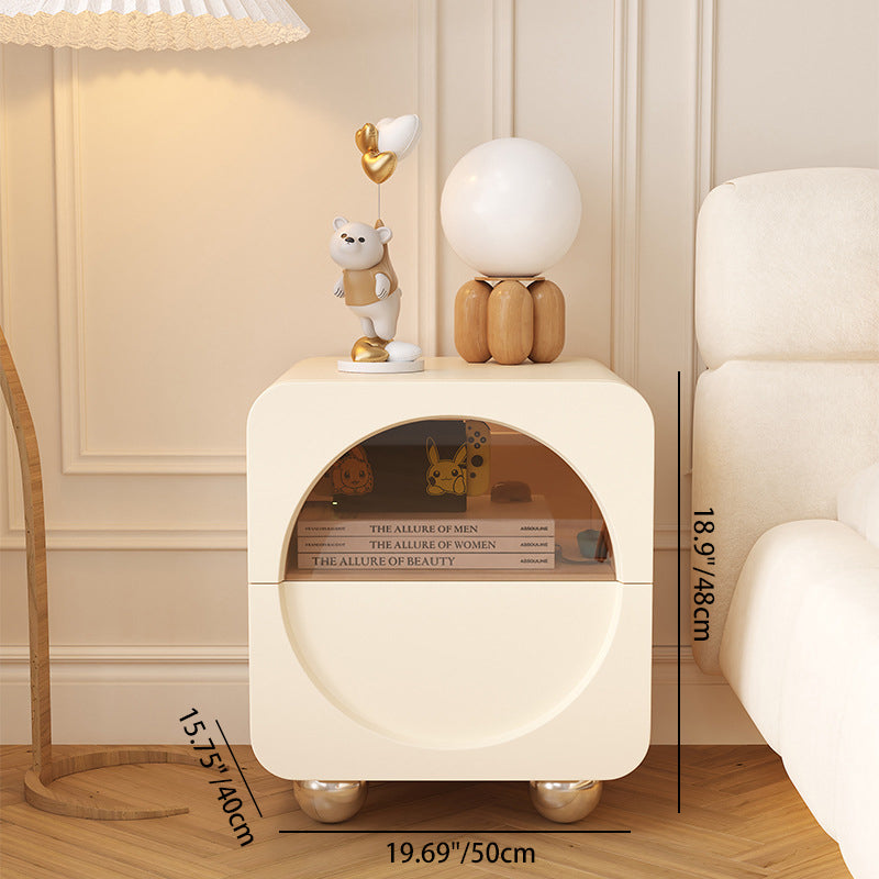 Modern Minimalist Square Tabletop Solid Wood Glass Density Panel Stainless Steel Nightstand 2-Drawer For Bedroom