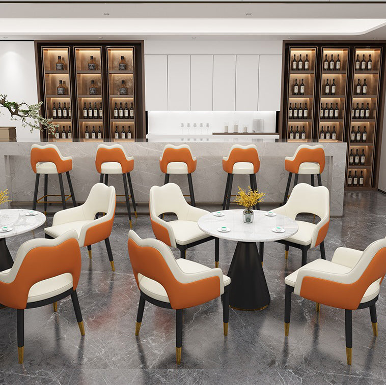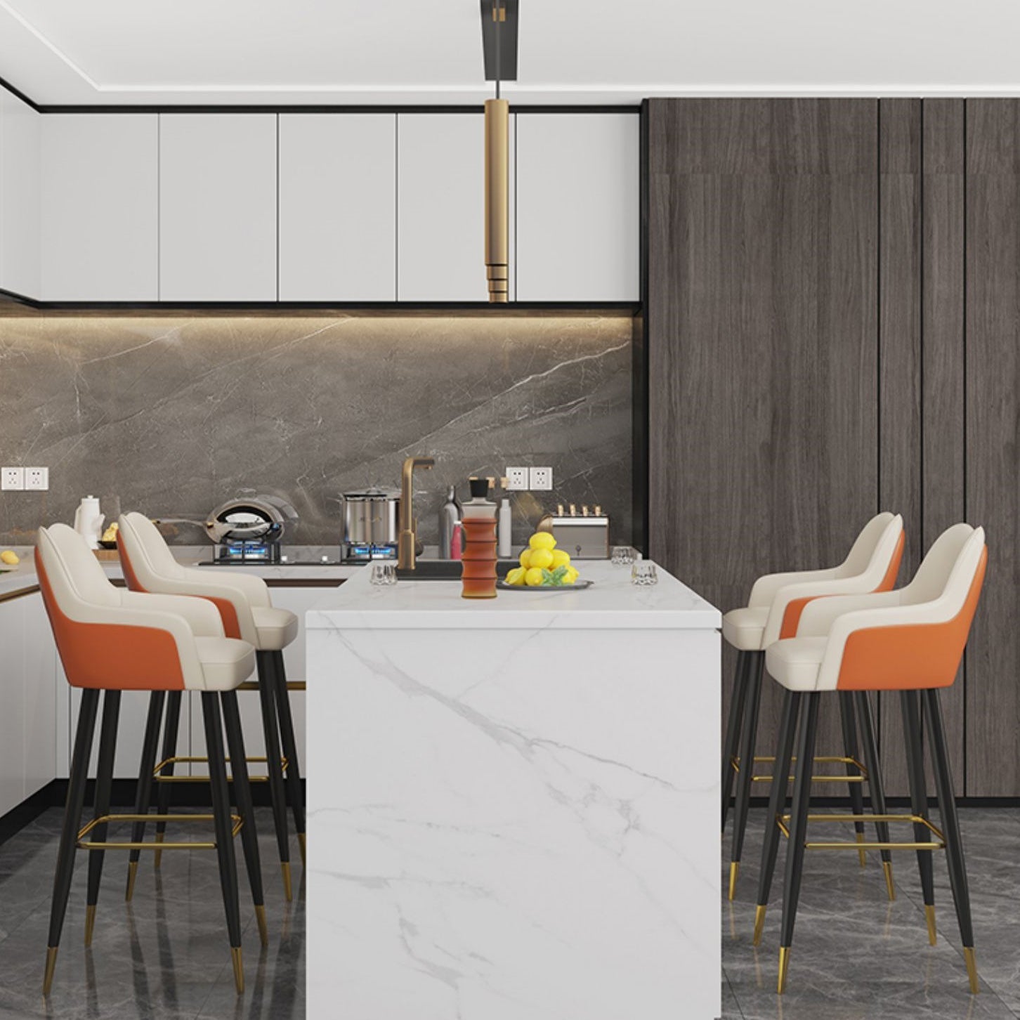 Modern Minimalist Square Wave Backrest Artificial Leather Carbon Steel Bar Stool Armrest For Dining Room