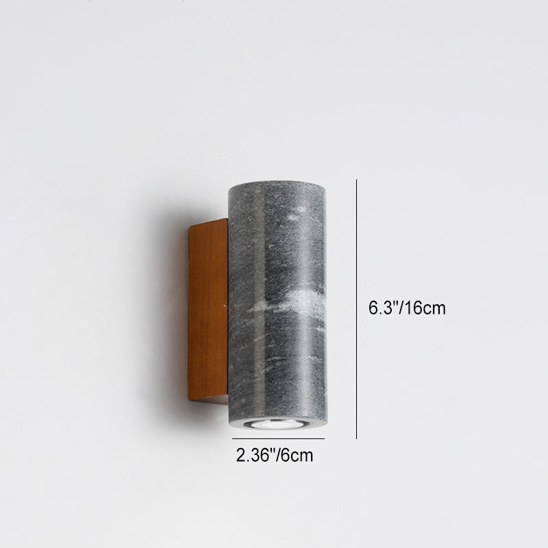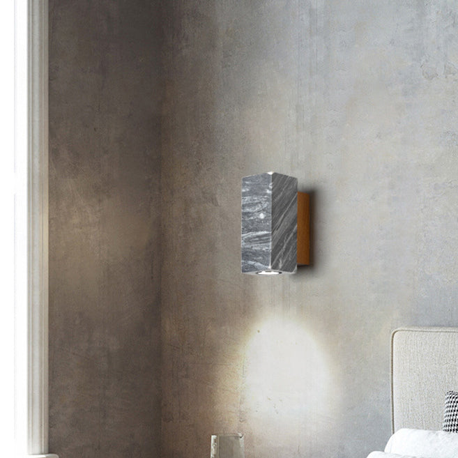 Modern Minimalist Stone Wood Cylinder Square 1-Light Wall Sconce Lamp For Bedroom