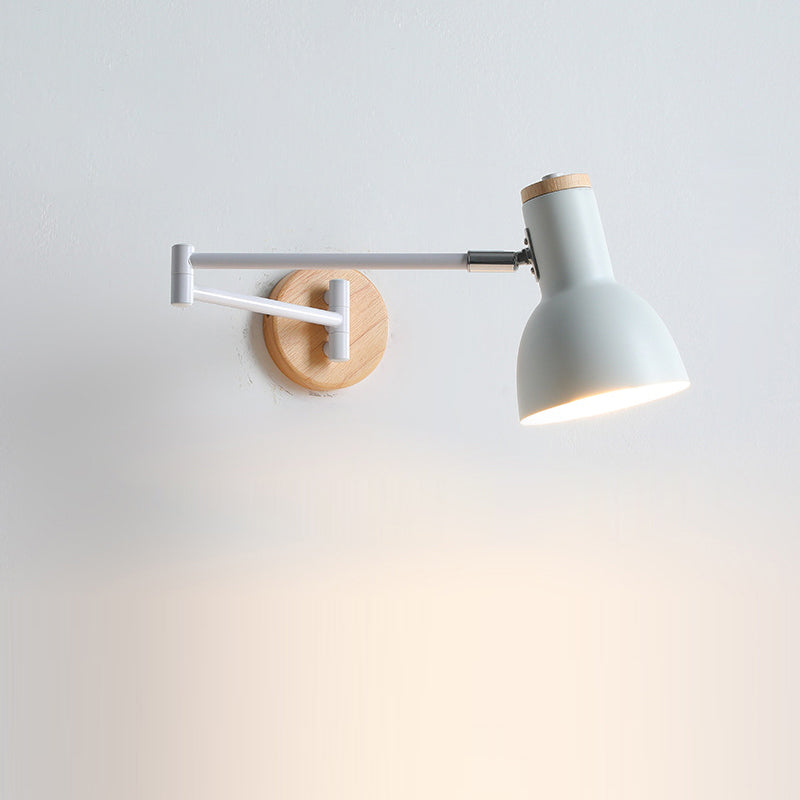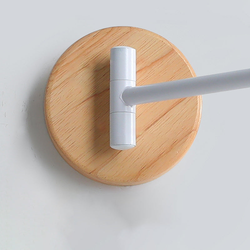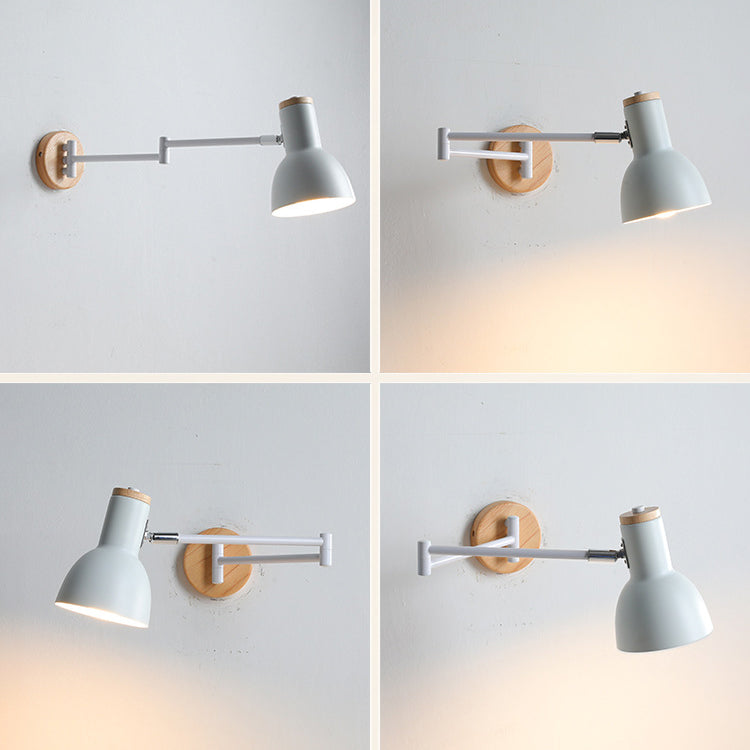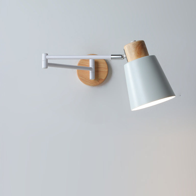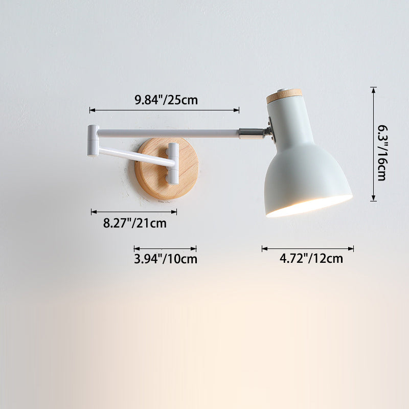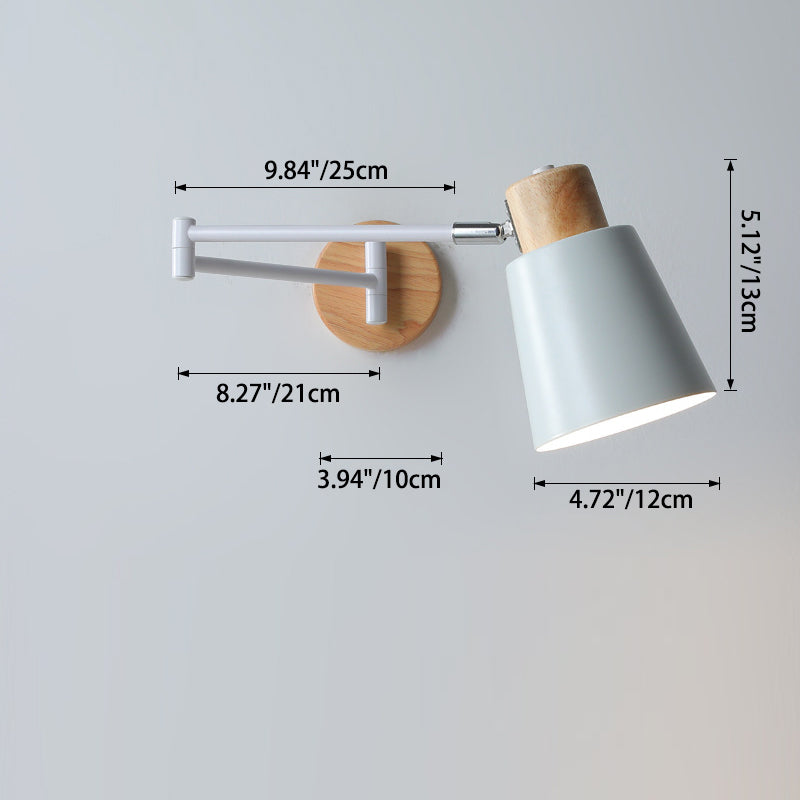 Modern Minimalist Swing Arm Retractable Cylinder Round Iron Solid Wood Glass 1-Light Wall Sconce Lamp For Bedroom