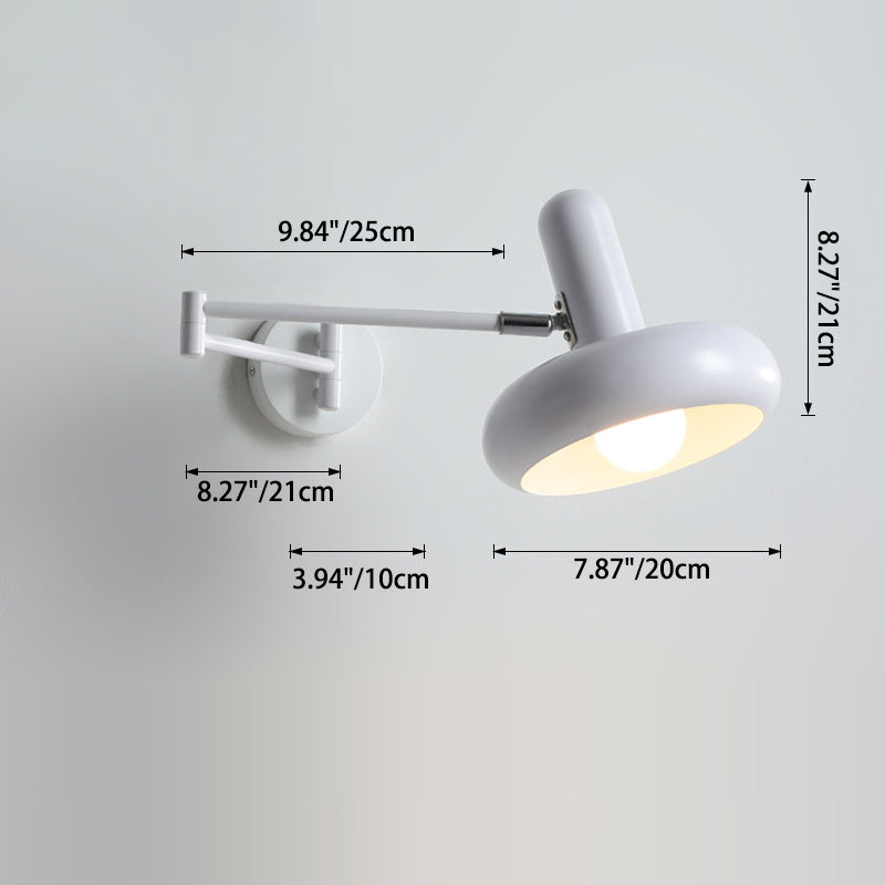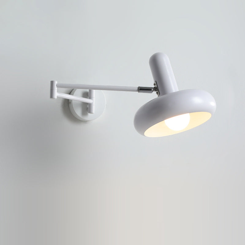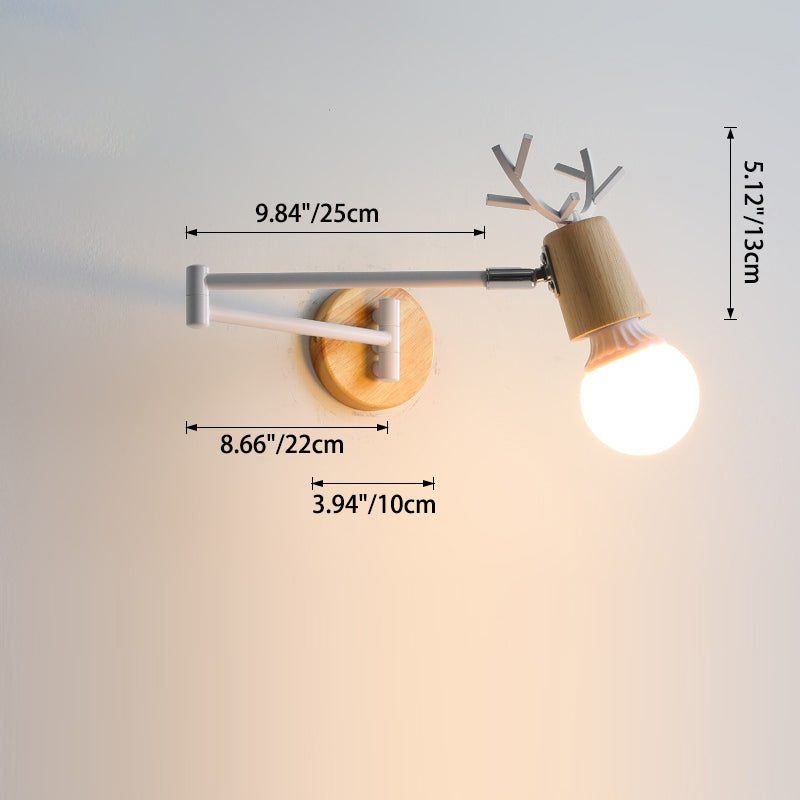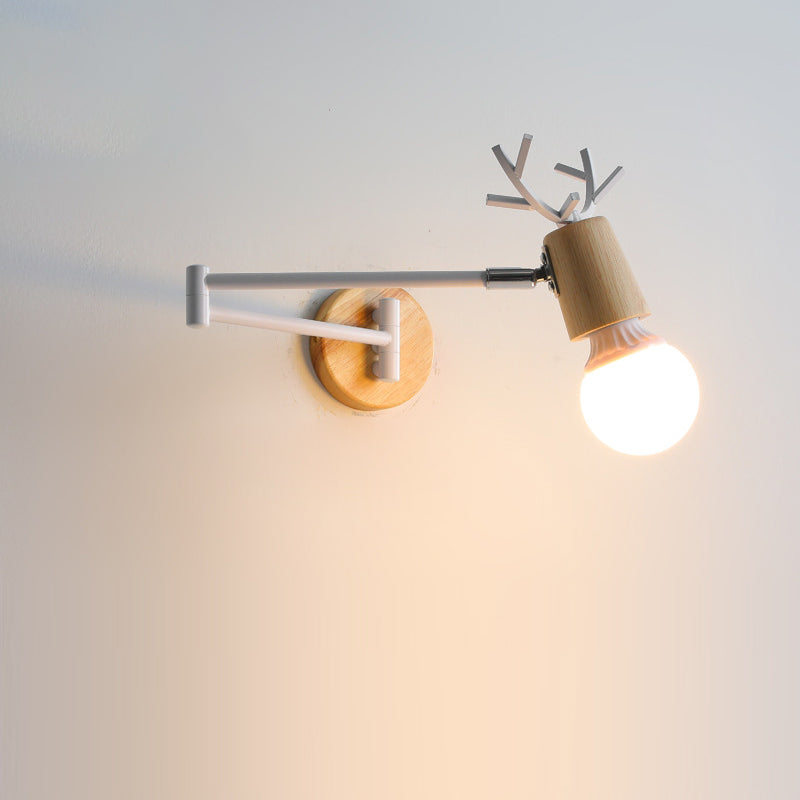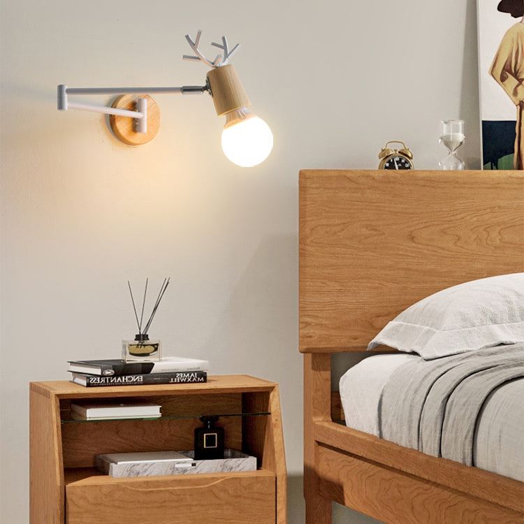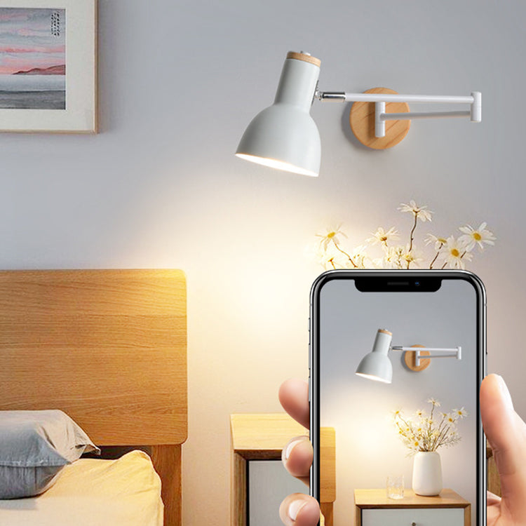 Modern Minimalist Swing Arm Retractable Cylinder Round Iron Solid Wood Glass 1-Light Wall Sconce Lamp For Bedroom