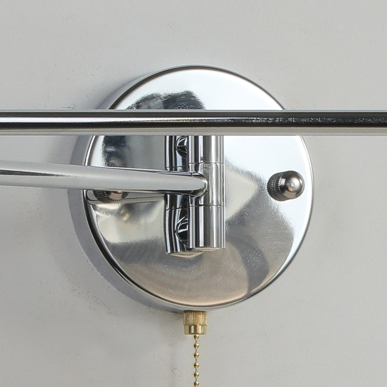 Modern Minimalist Swing Arm Round Cylinder Iron Fabric 1-Light Wall Sconce Lamp For Bedroom