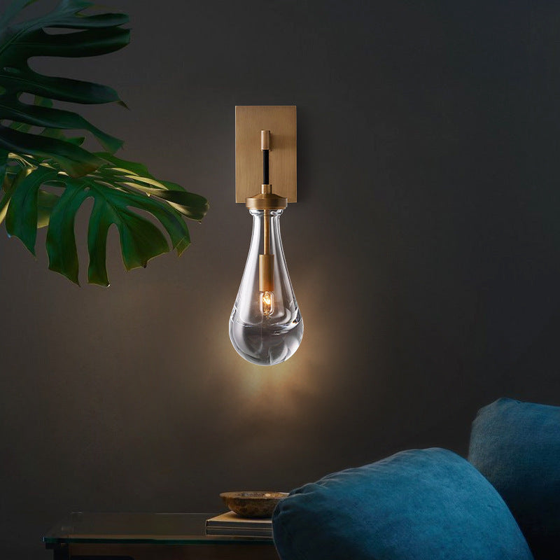 Modern Minimalist Teardrop-Shaped Glass Wall Sconce Lamp with Brass Base 1-Light for Living Room
