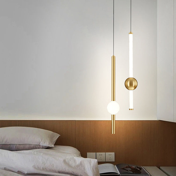 Modern Minimalist Vertical Rods Round Ball Iron Acrylic LED Chandelier For Dining Room