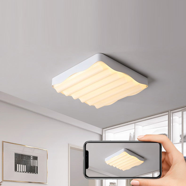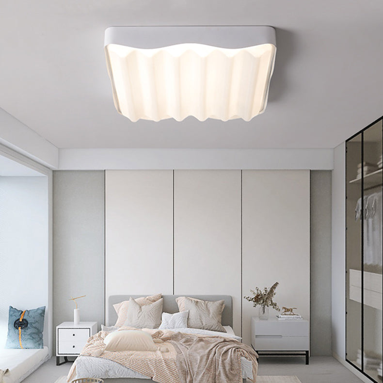 Modern Minimalist Water Ripple Texture Geometric Square Acrylic Iron LED Flush Mount Ceiling Light For Bedroom
