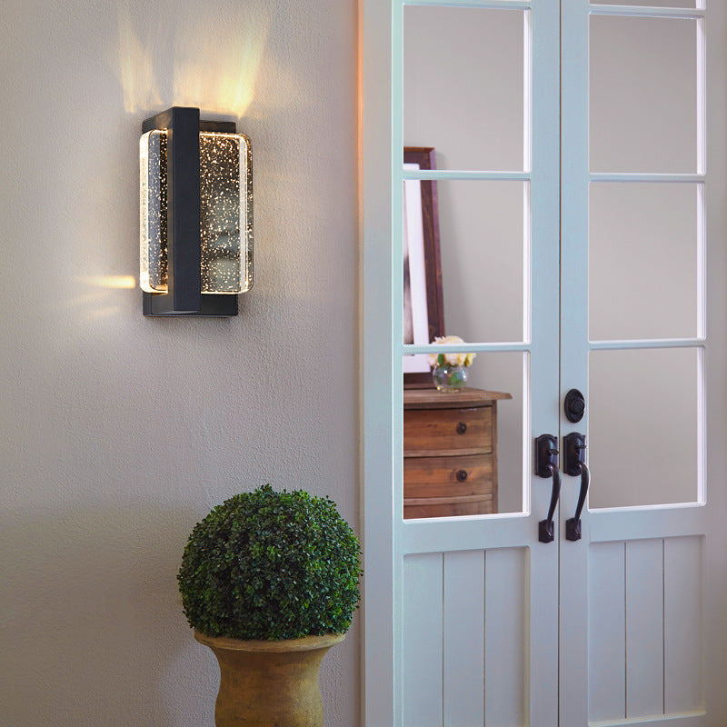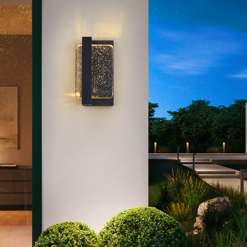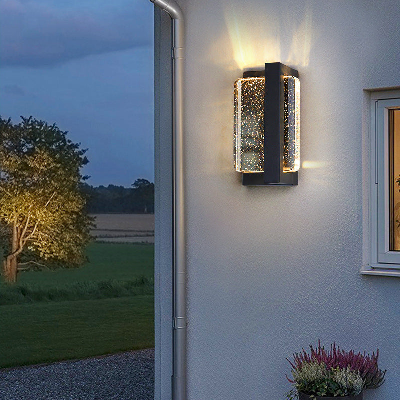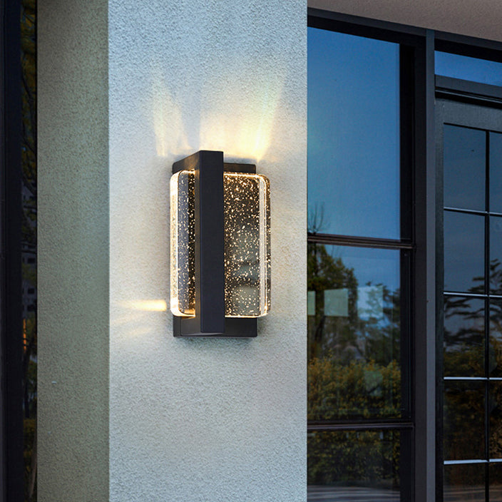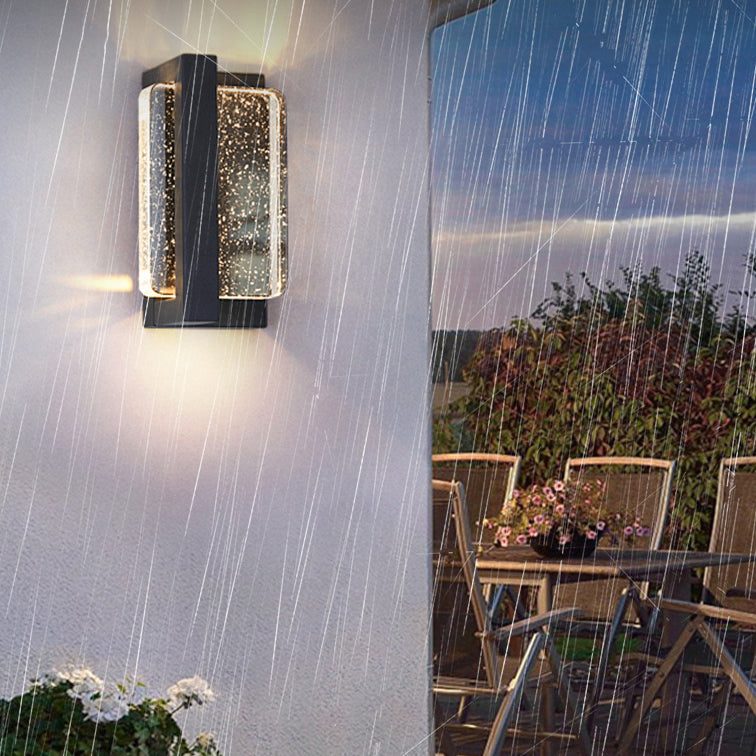 Modern Minimalist Waterproof Rectangle Iron Crystal LED Outdoor Wall Sconce Lamp For Garden