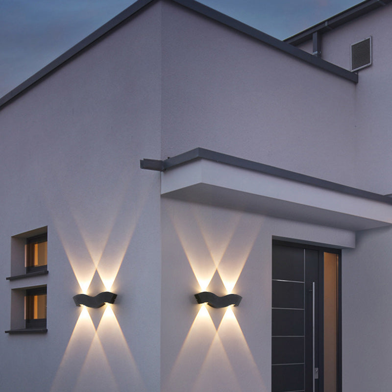 Modern Minimalist Waterproof Wave Rectangle Half Circle Aluminum LED Outdoor Wall Sconce Lamp For Garden