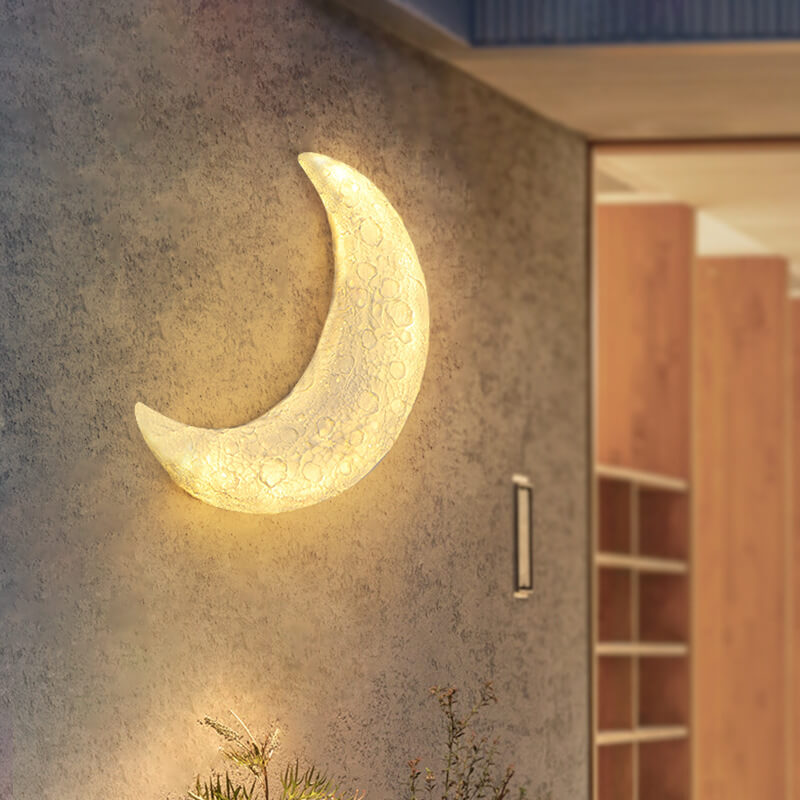Modern Outdoor Moon Shape Resin LED Rainproof Wall Sconce Lamp