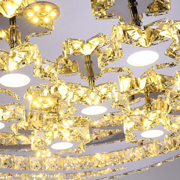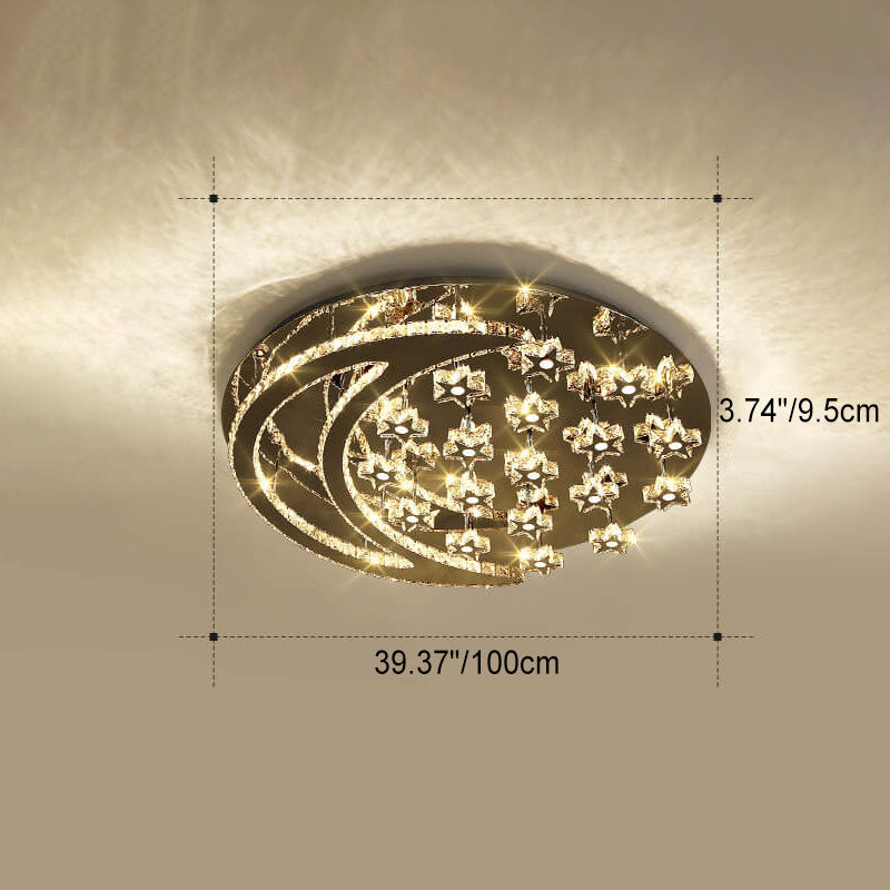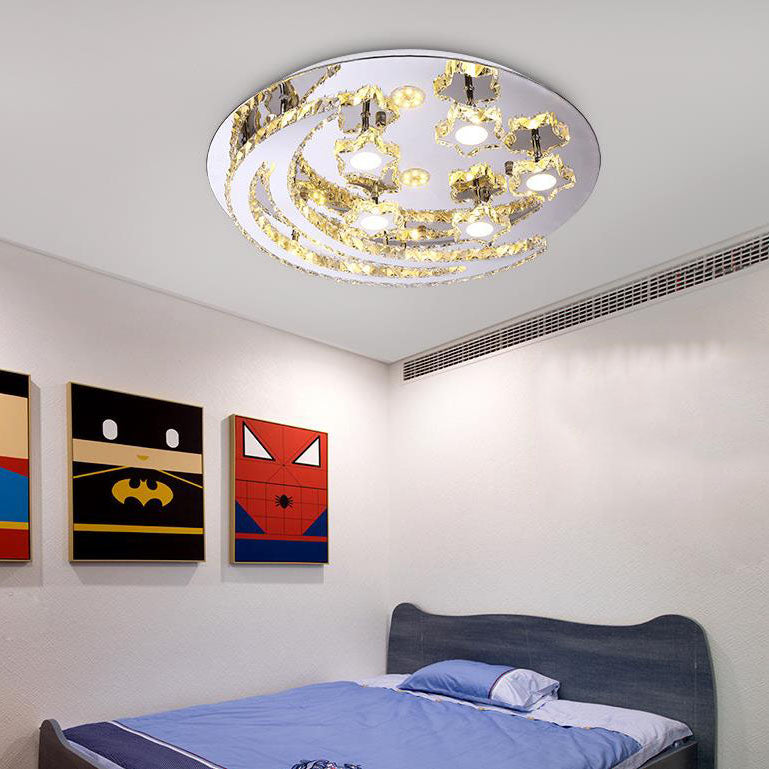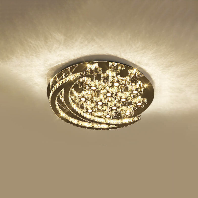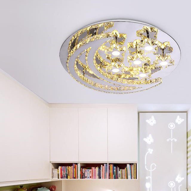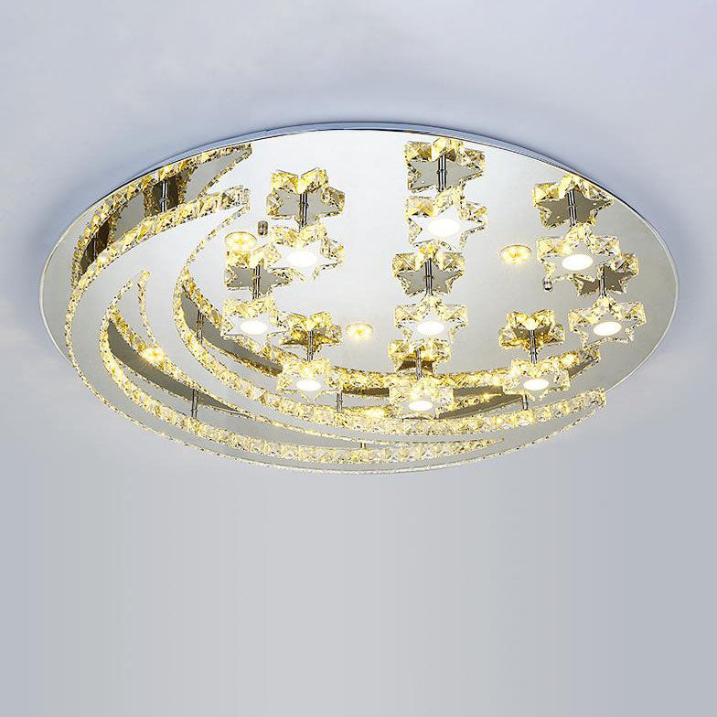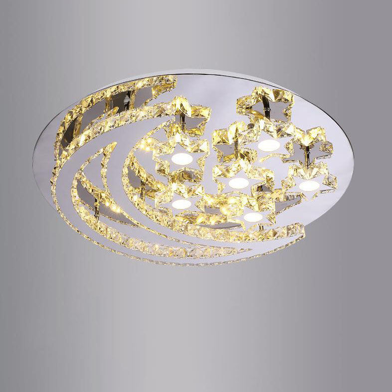 Modern Romantic Stainless Steel Crystal Star Moon LED Flush Mount Ceiling Light