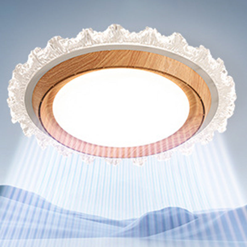 Modern Simplicity ABS PC Acrylic Round Lace LED Flush Mount Ceiling Bladeless Fan Light For Bedroom