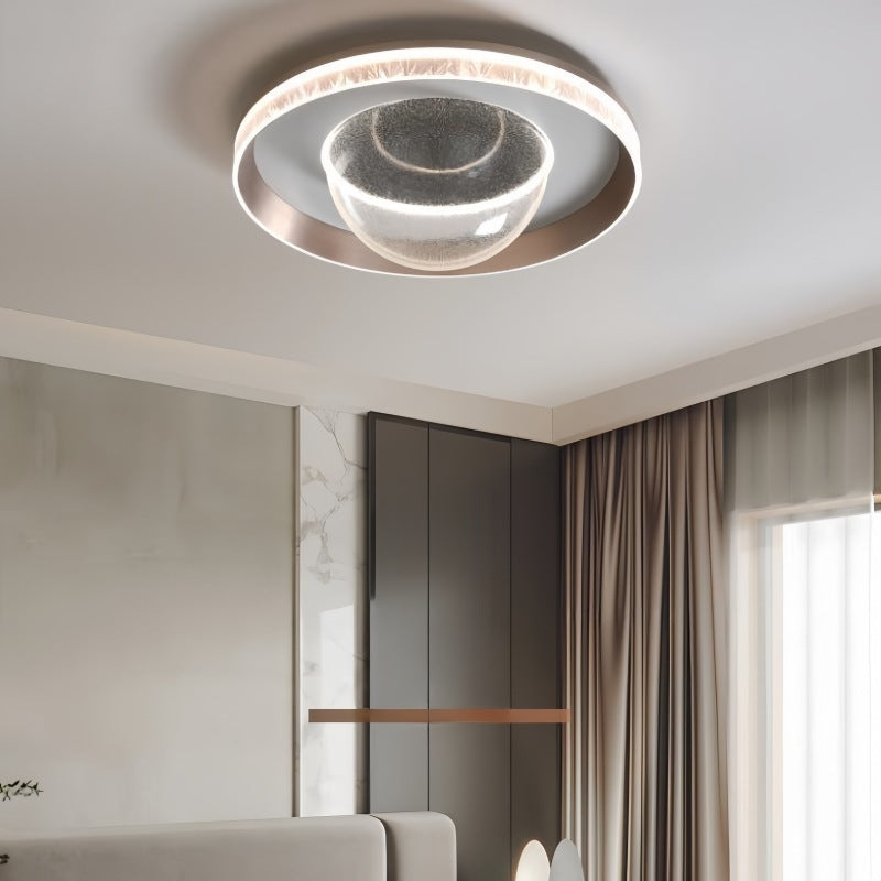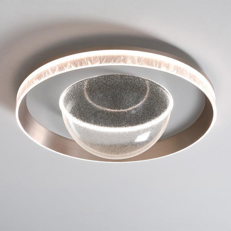 Modern Simplicity Aluminum Acrylic Round Starry Sky Ice Pattern LED Flush Mount Ceiling Light For Bedroom