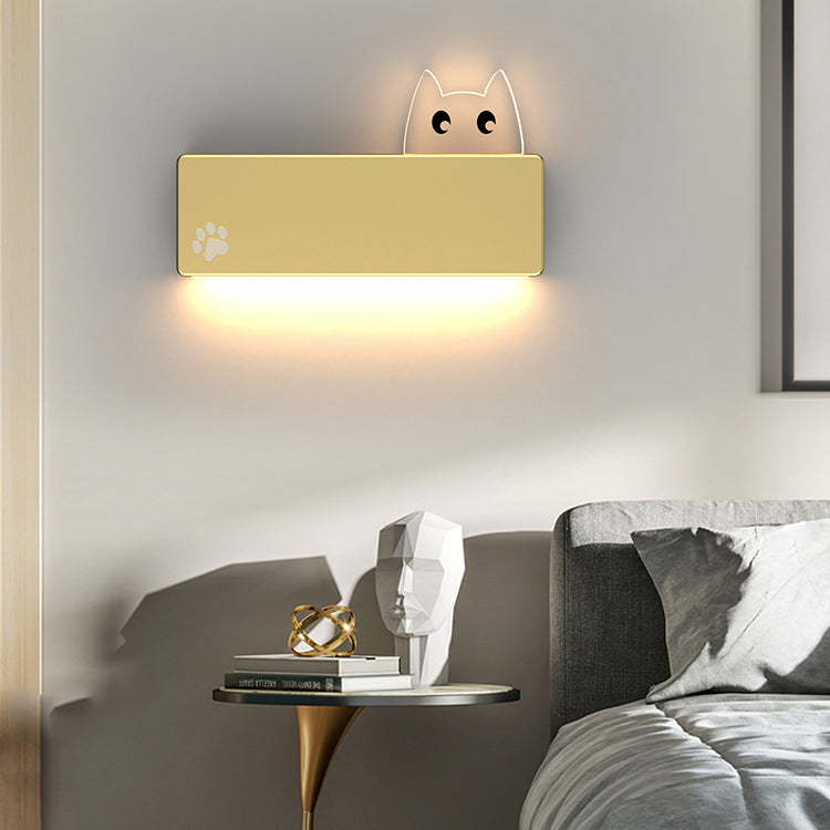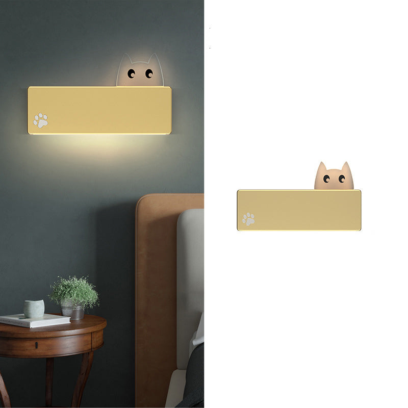 Modern Simplicity Cartoon Animal Cat Rectangular Iron LED Wall Sconce Lamp For Living Room