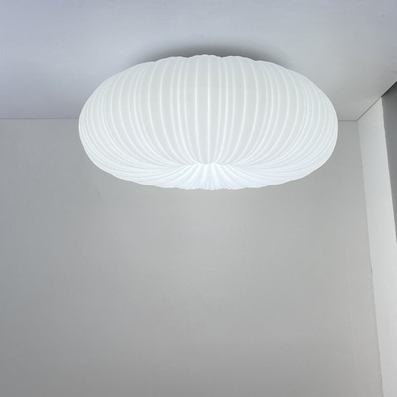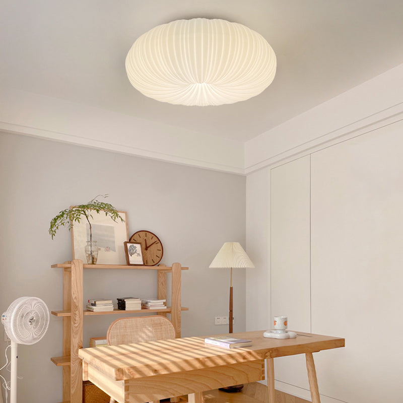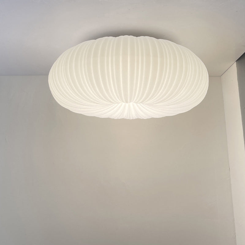 Modern Simplicity Cream Pumpkin Round PE Iron LED Flush Mount Ceiling Light For Living Room