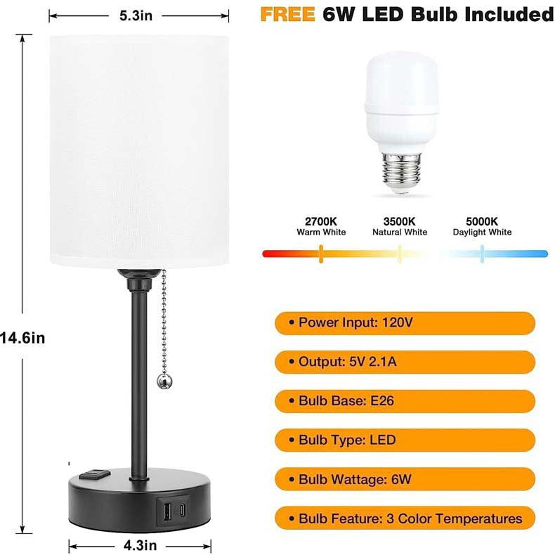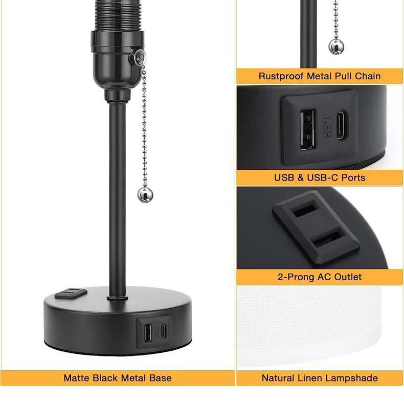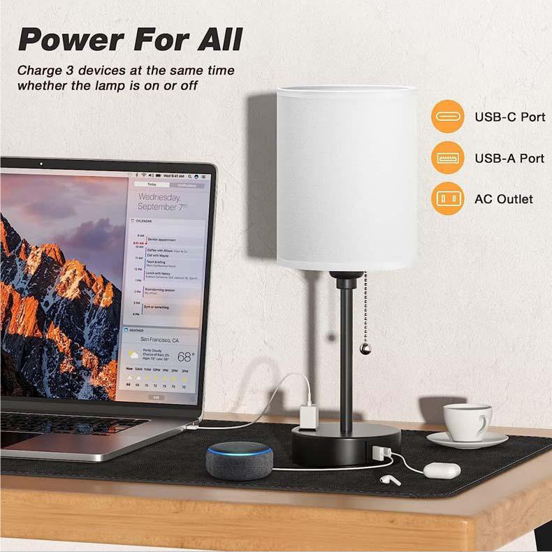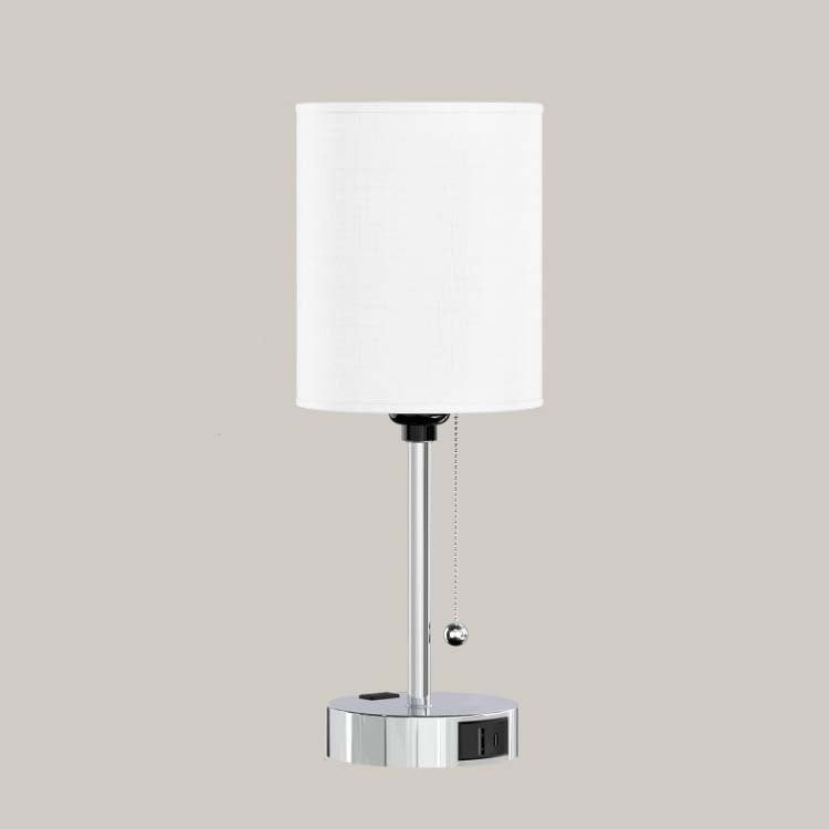 Modern Simplicity Fabric Iron Cylinder Zipper USB Rechargeable 1-Light Table Lamp For Bedside