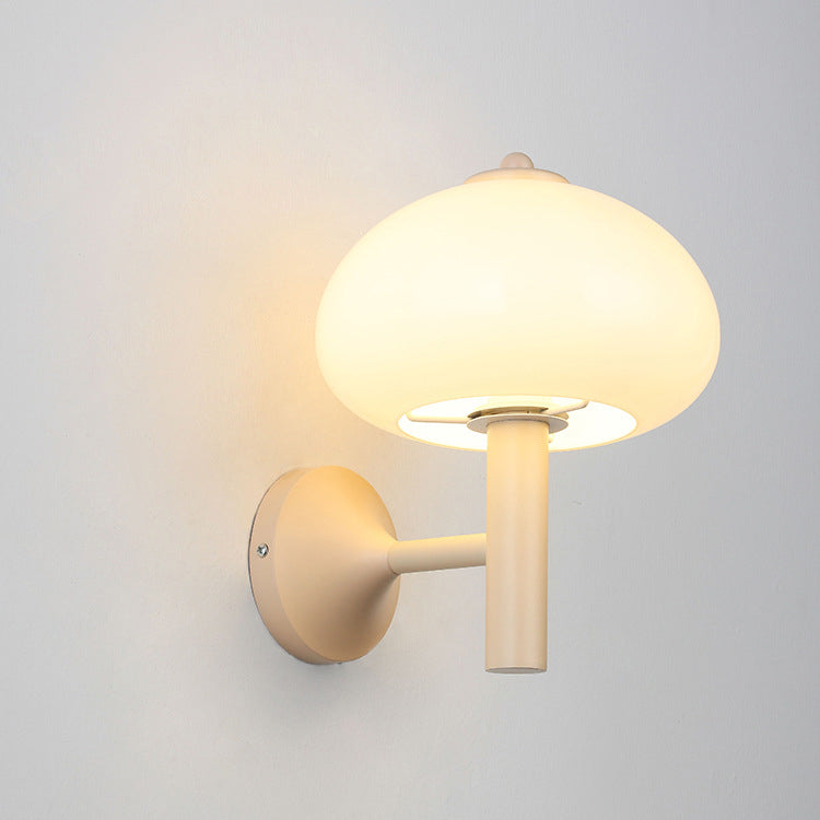 Modern Simplicity Iron Glass Mushroom Round 1-Light Wall Sconce Lamp For Bedside
