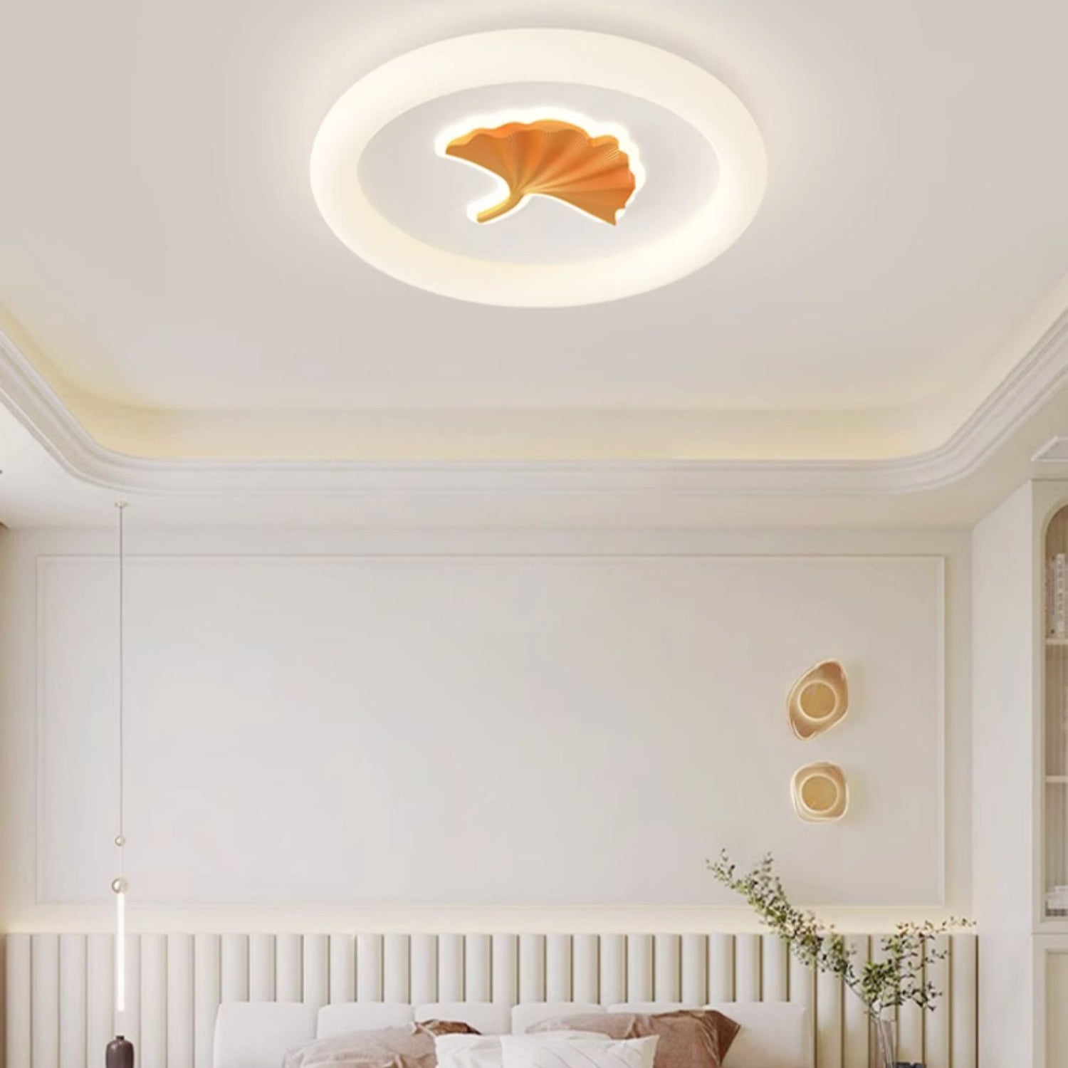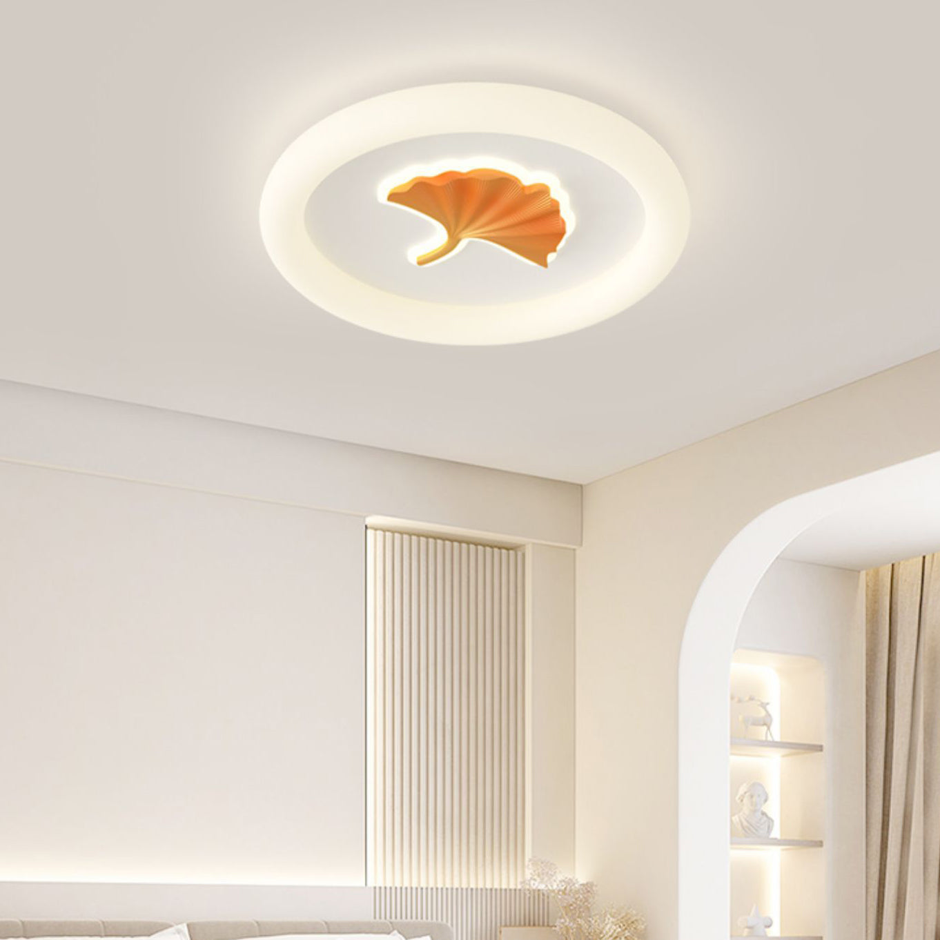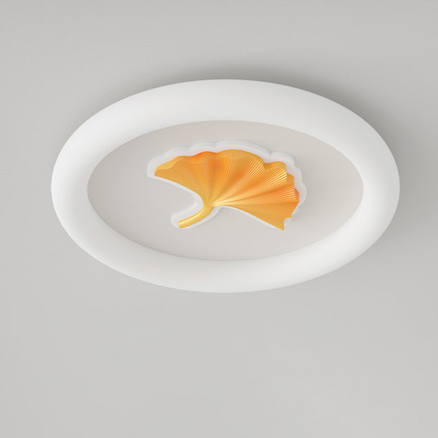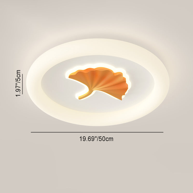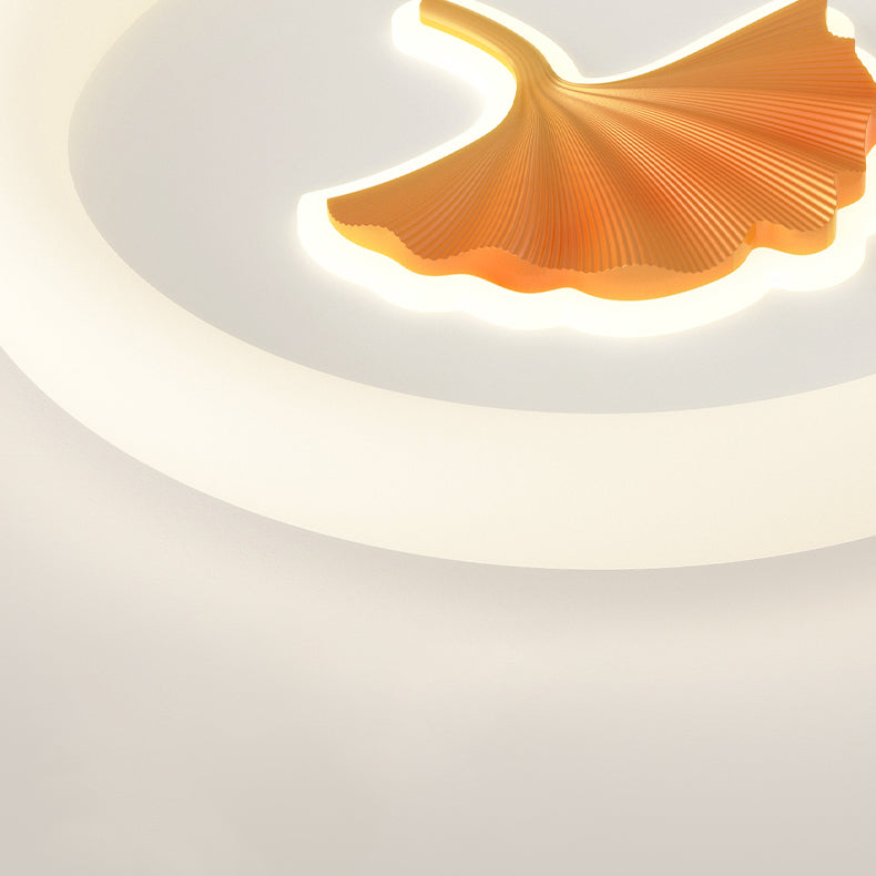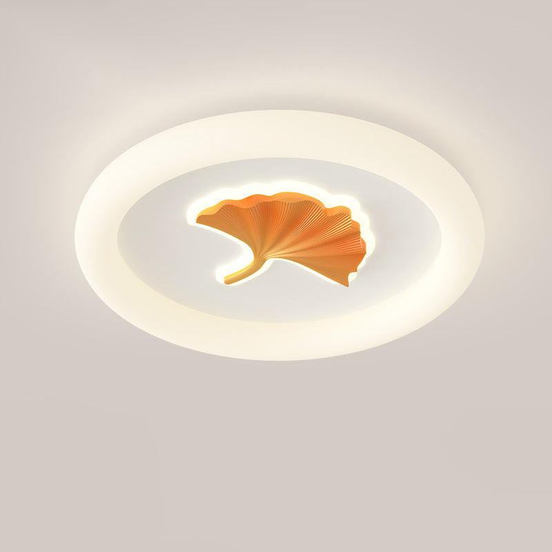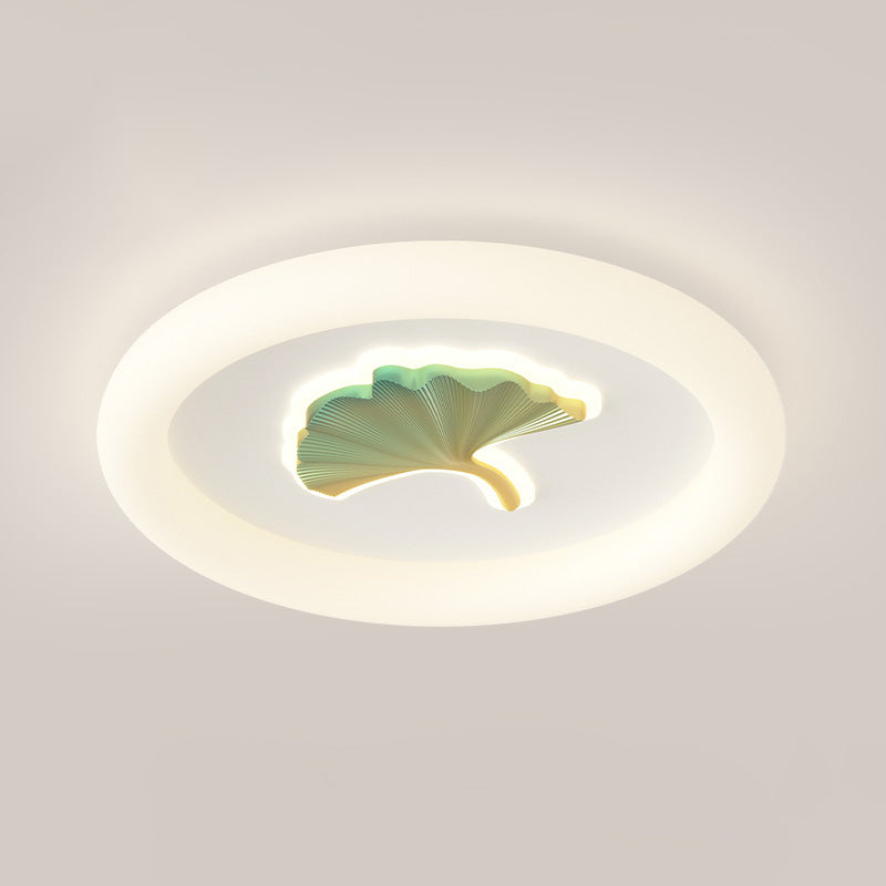 Modern Simplicity Iron PE Round Ginkgo Leaf LED Flush Mount Ceiling Light For Living Room