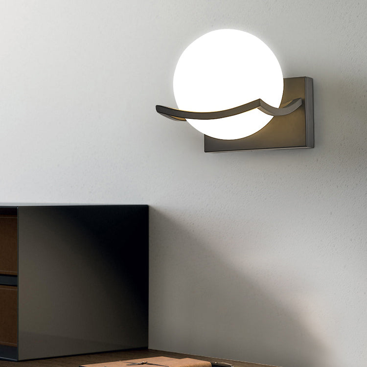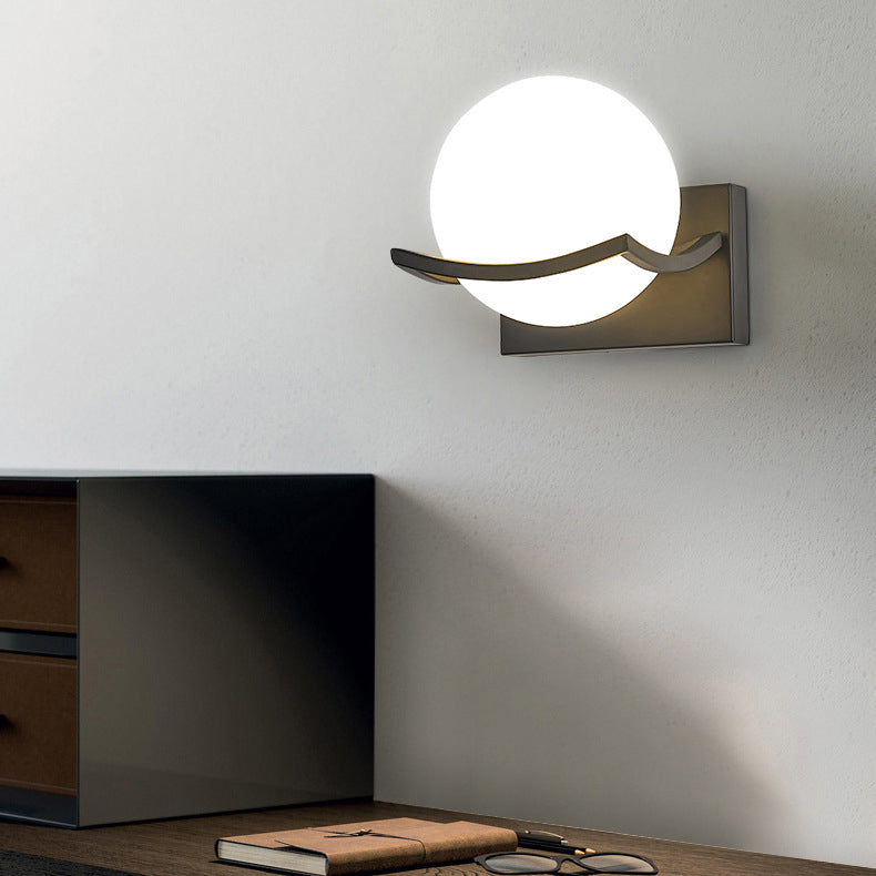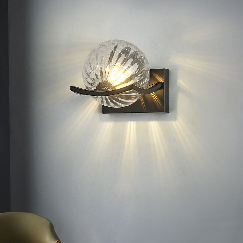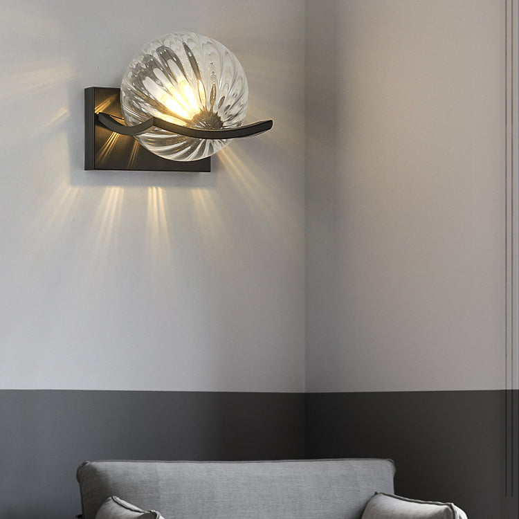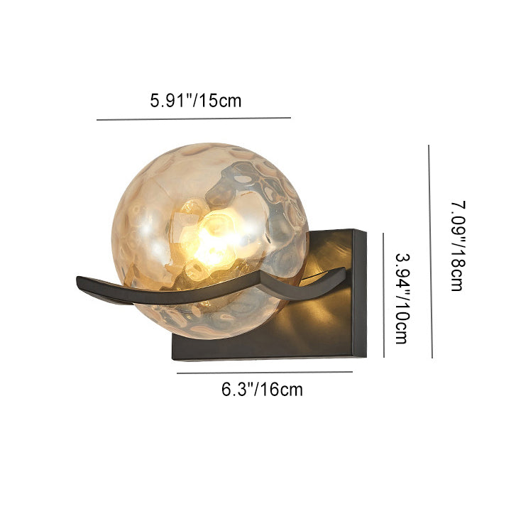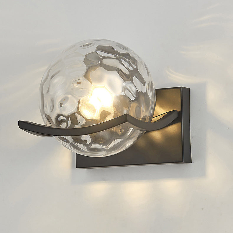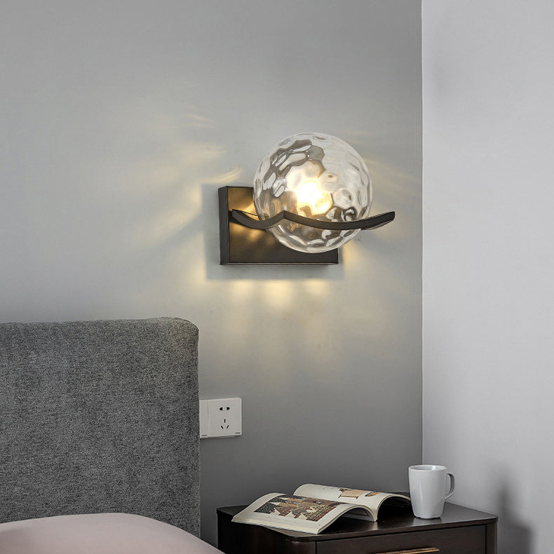 Modern Simplicity Iron Water Pattern Glass Ball Shade 1-Light Wall Sconce Lamp For Bedroom