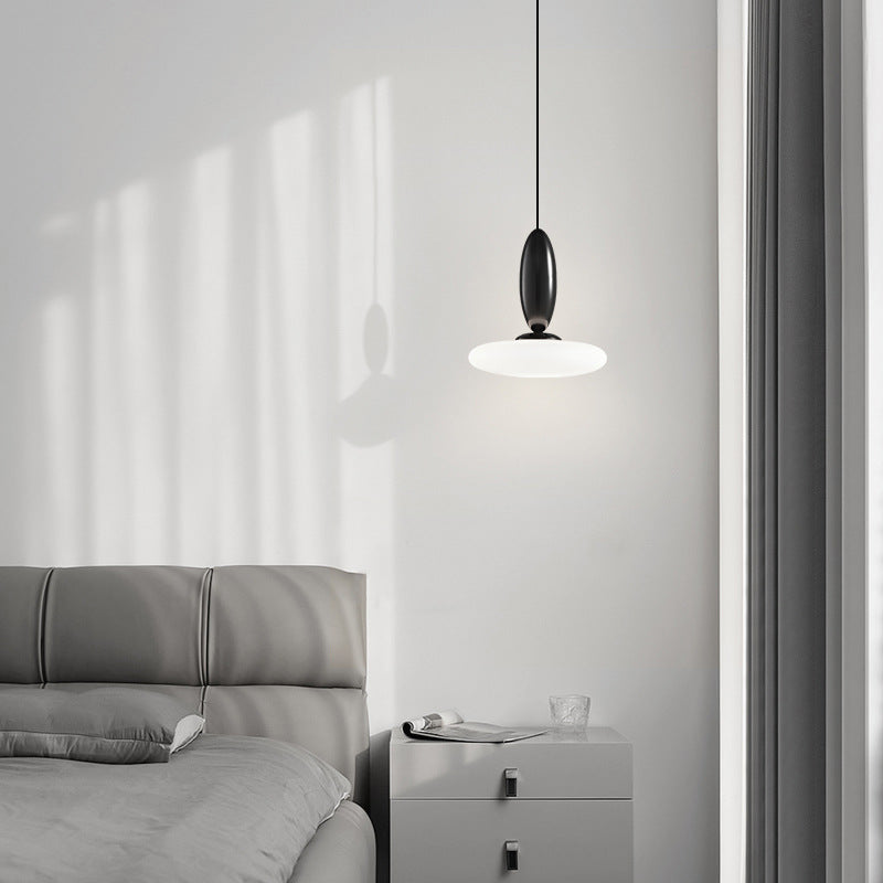 Modern Simplicity Oval Aluminum Glass LED Pendant Light For Bedroom