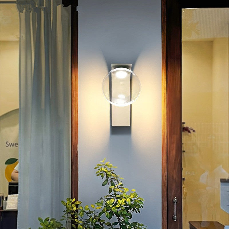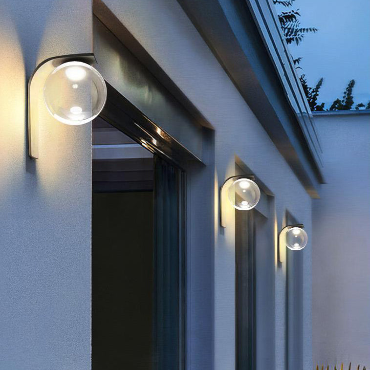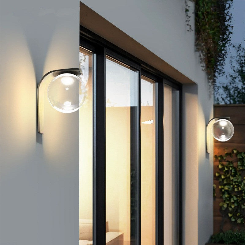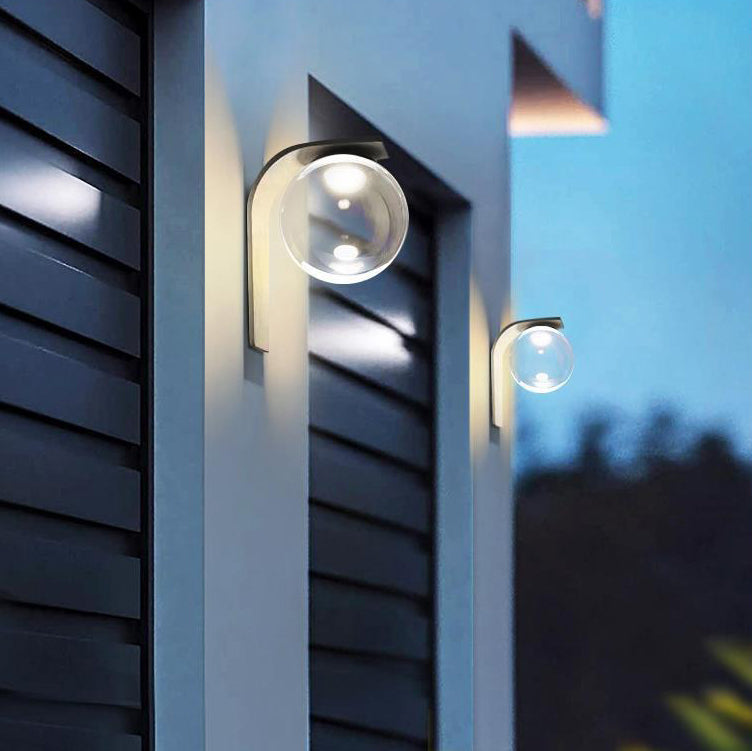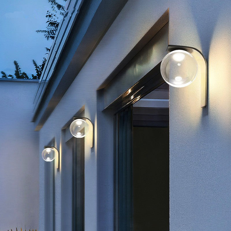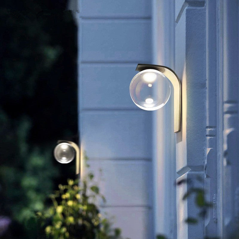 Modern Simplicity Solar Waterproof Stainless Steel Acrylic Ball Bended Arm LED Wall Sconce Lamp For Outdoor Patio