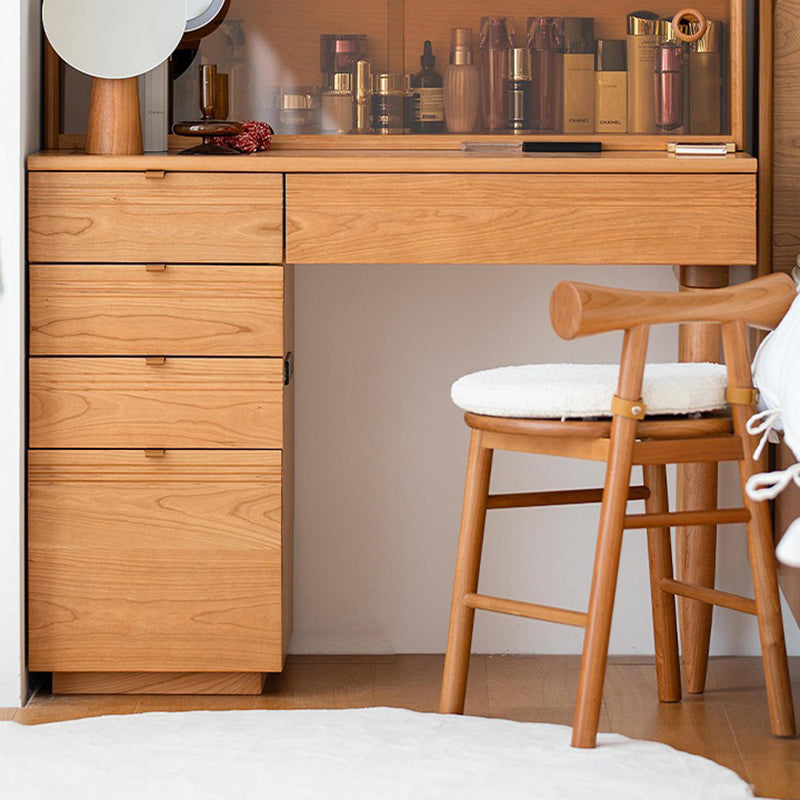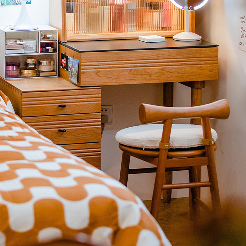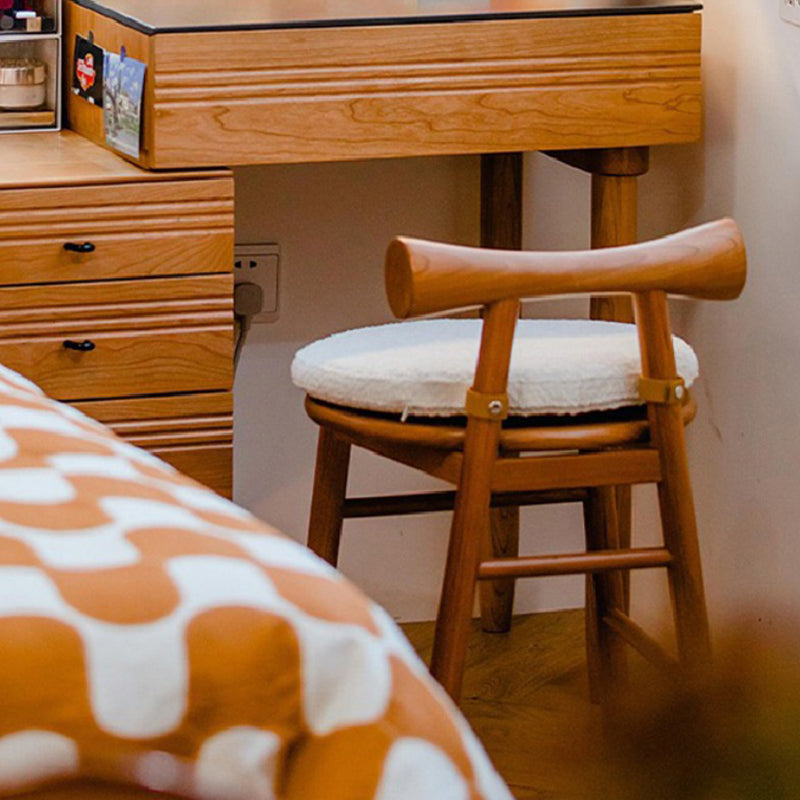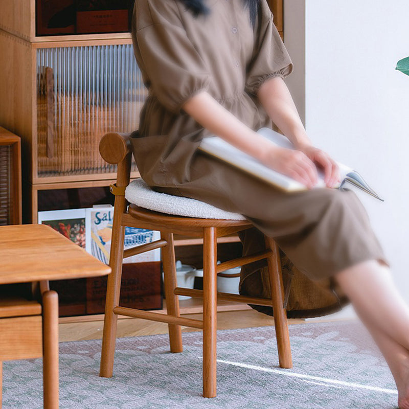 Modern Simplicity Wood Lambswool Round Vanity Stool Backrest Footrest For Bedroom
