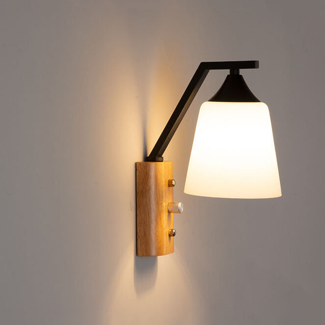 Modern Solid Wood Glass Bell Shade 1-Light Wall Sconce Lamp