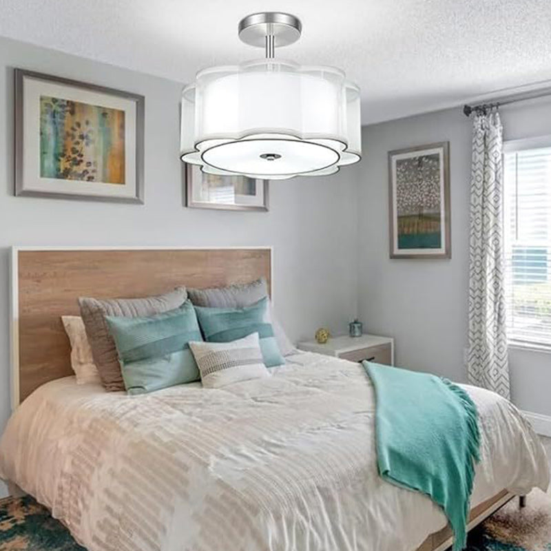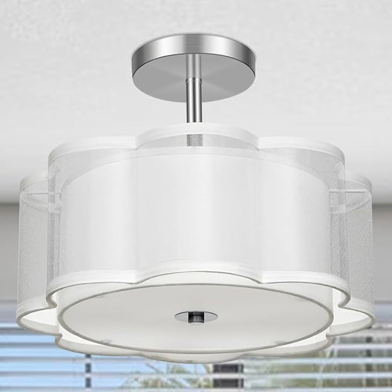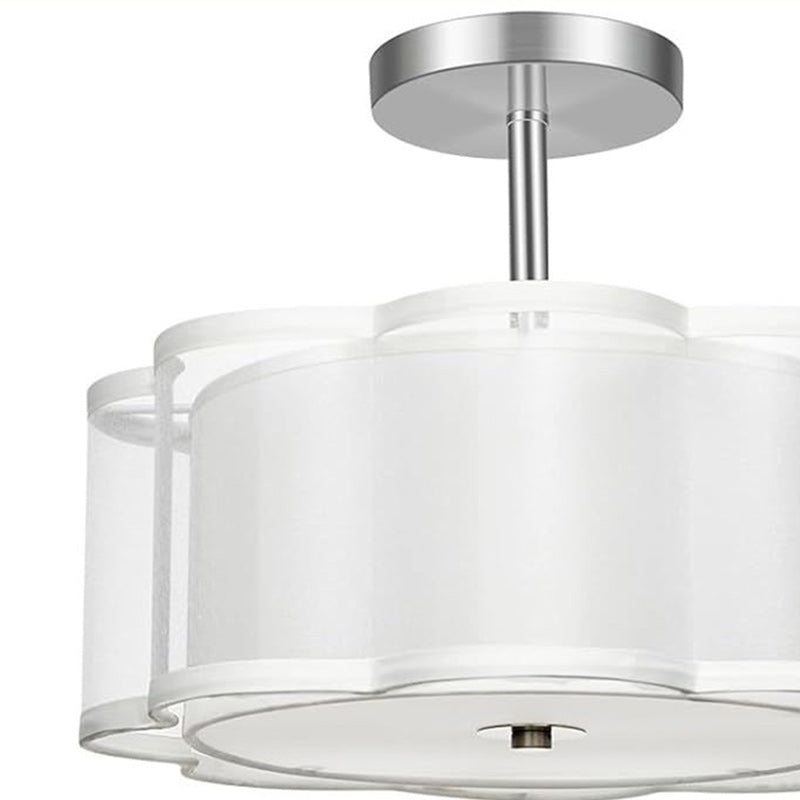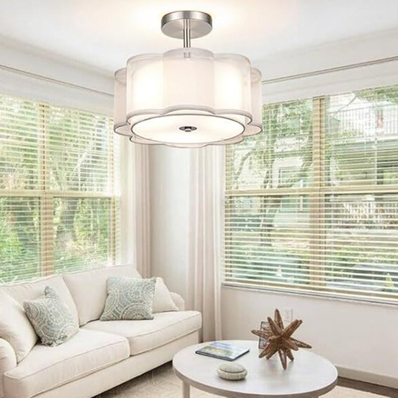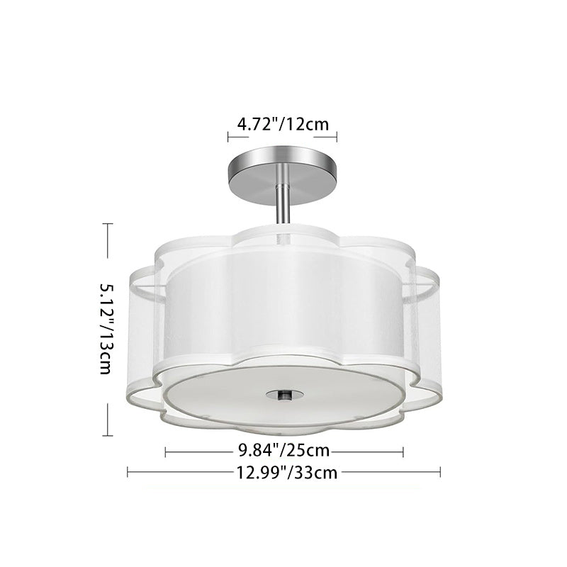 Modern Transitional Flower Iron Fabric 1-Light Semi-Flush Mount Ceiling Light For Living Room
