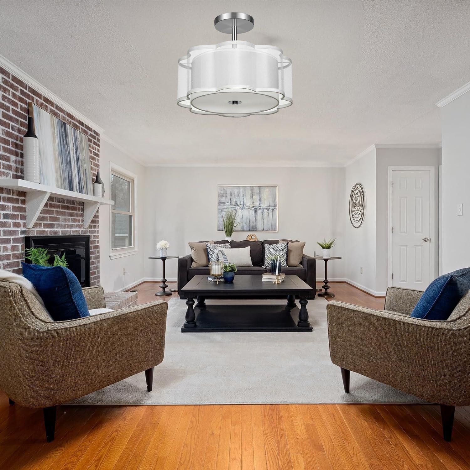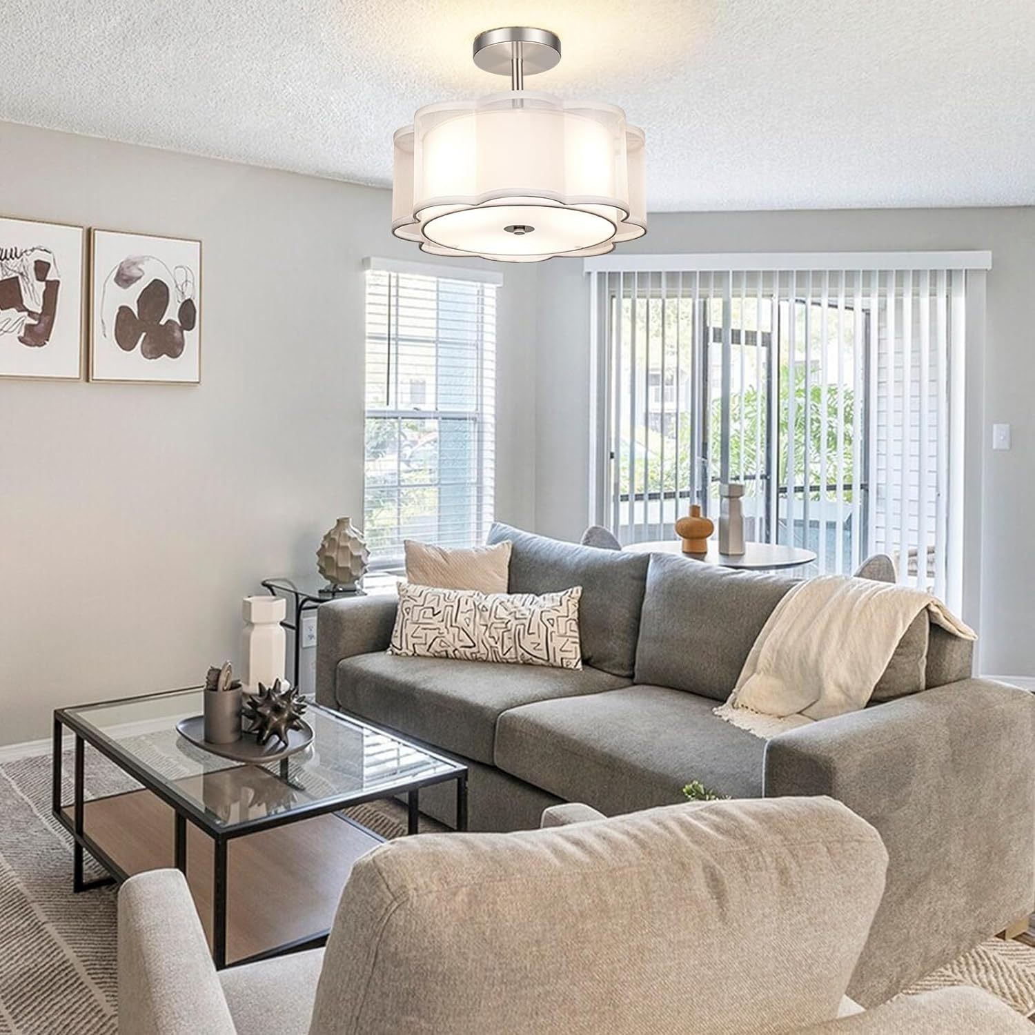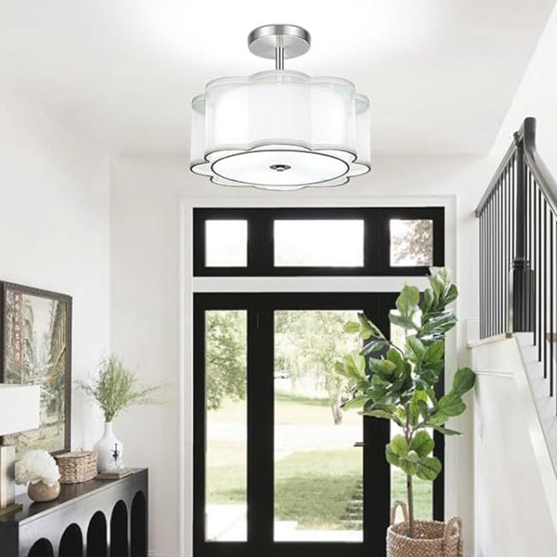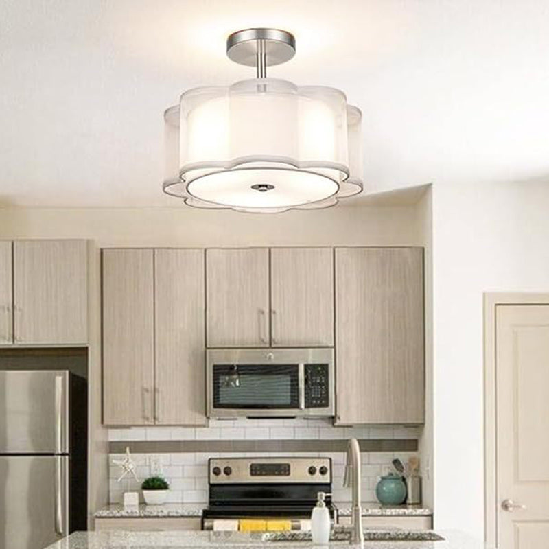Modern Transitional Flower Iron Fabric 1-Light Semi-Flush Mount Ceiling Light For Living Room