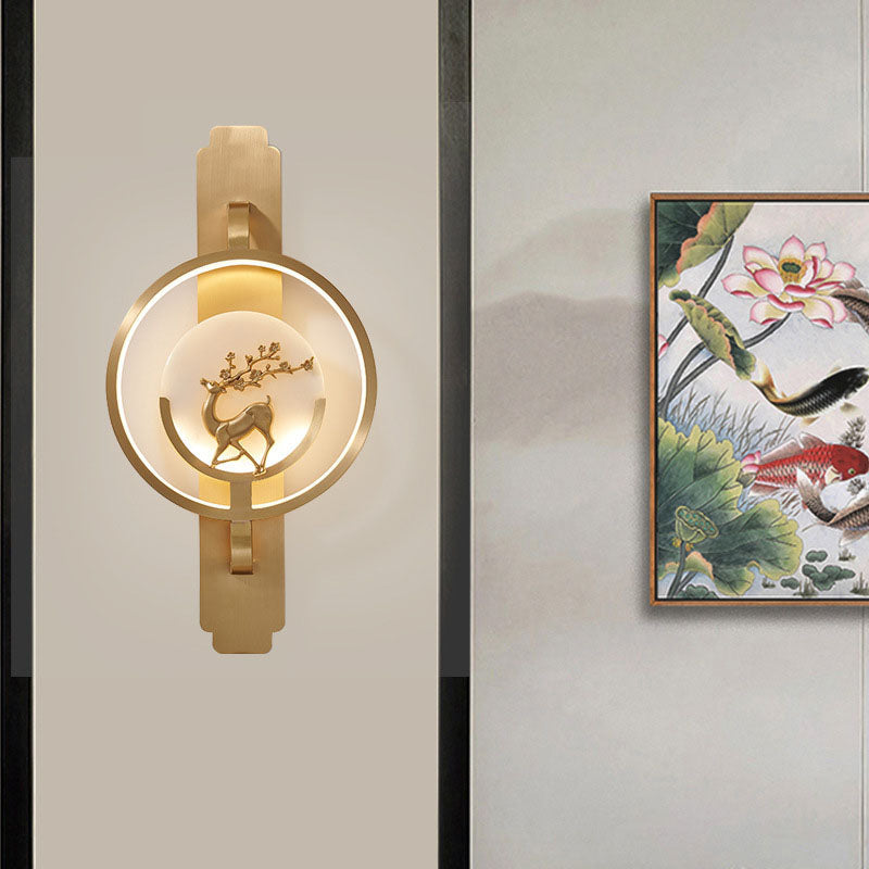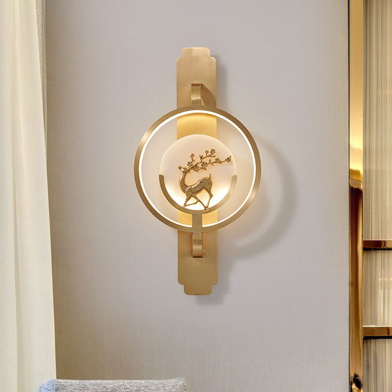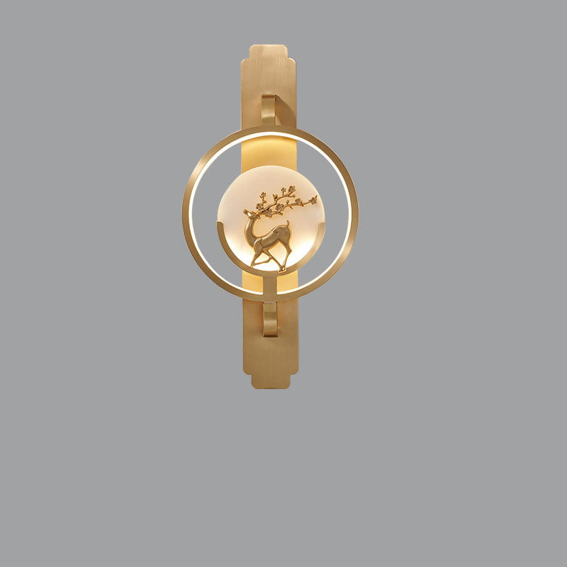 Modern Transitional Round Fawn Copper Marble LED Wall Sconce Lamp For Living Room