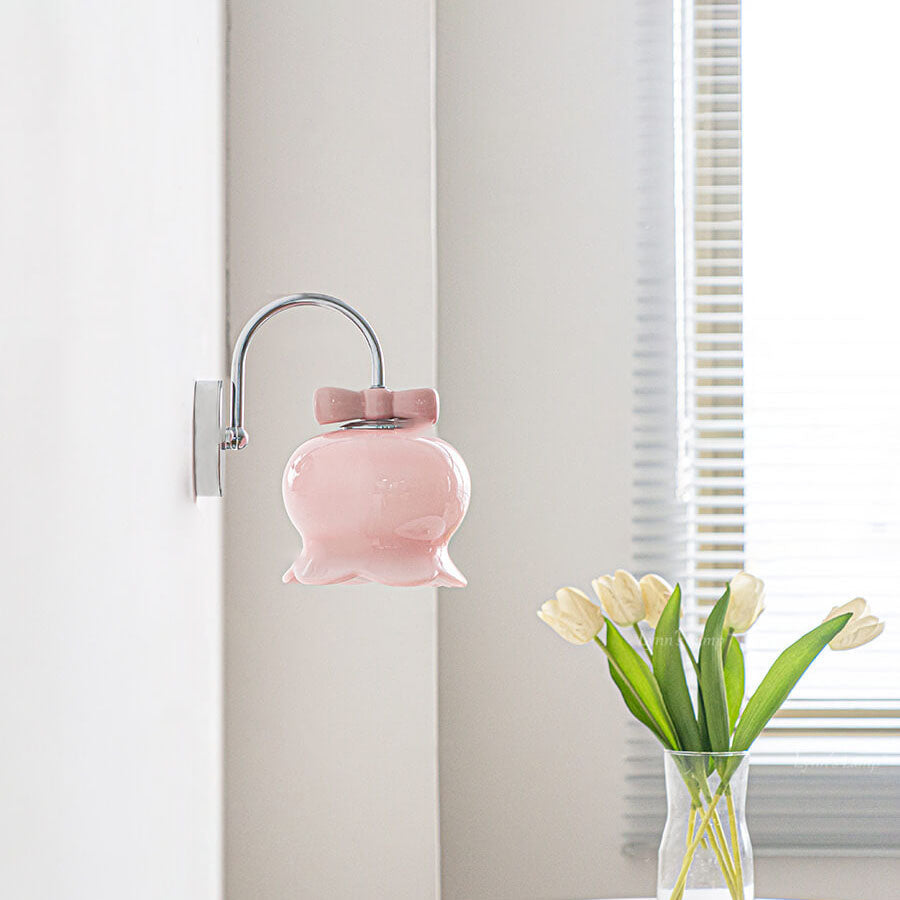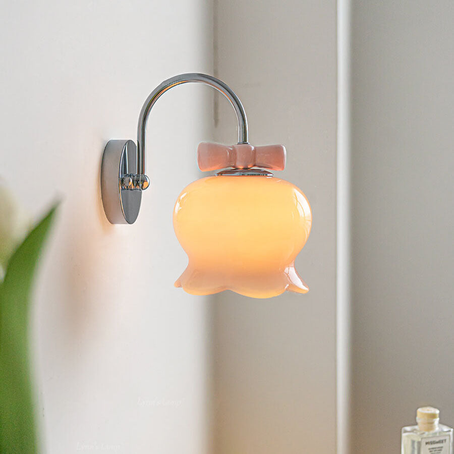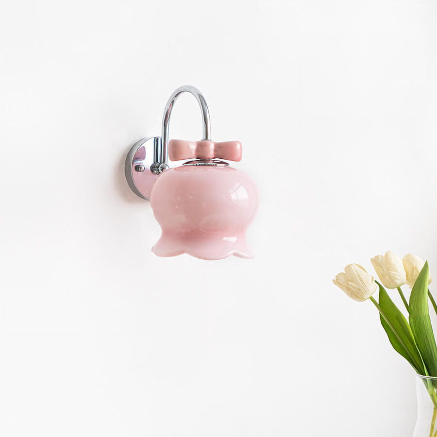 Nordic Creative Bell Orchid Flower Bow Glass Lampshade Iron 1-Light Wall Sconce Lamp