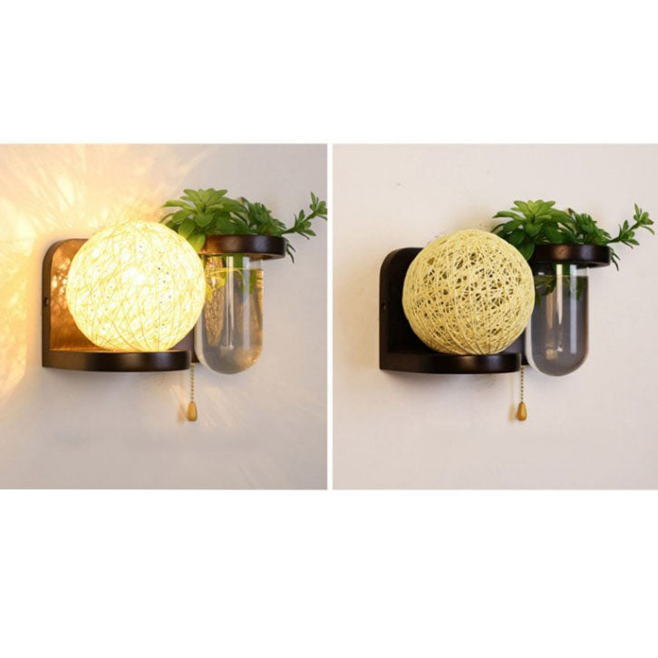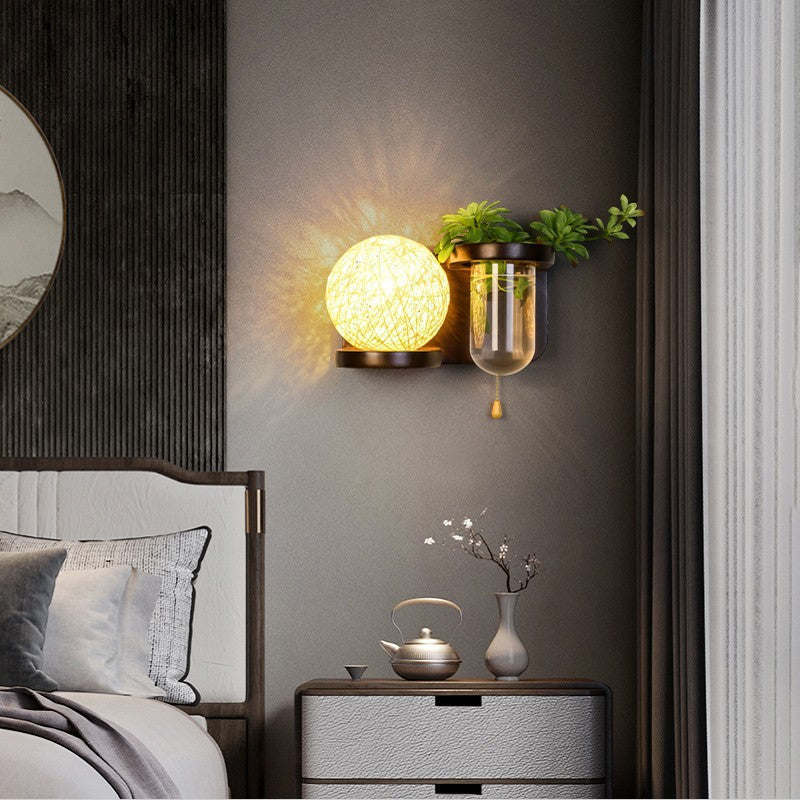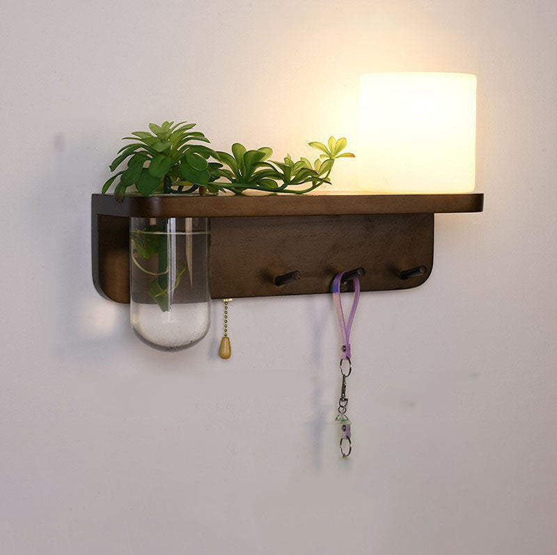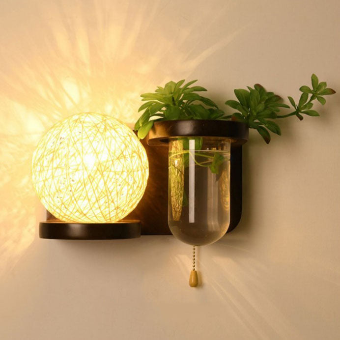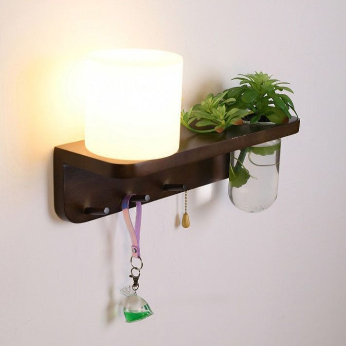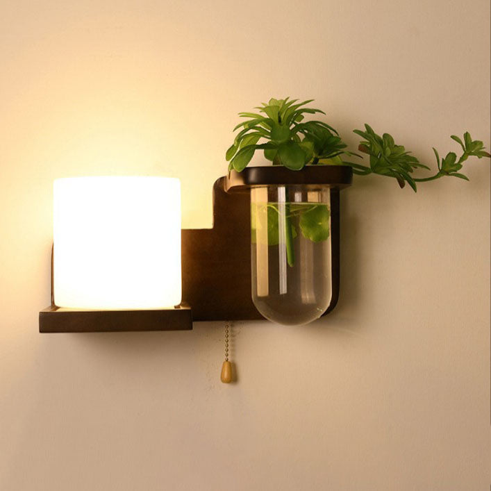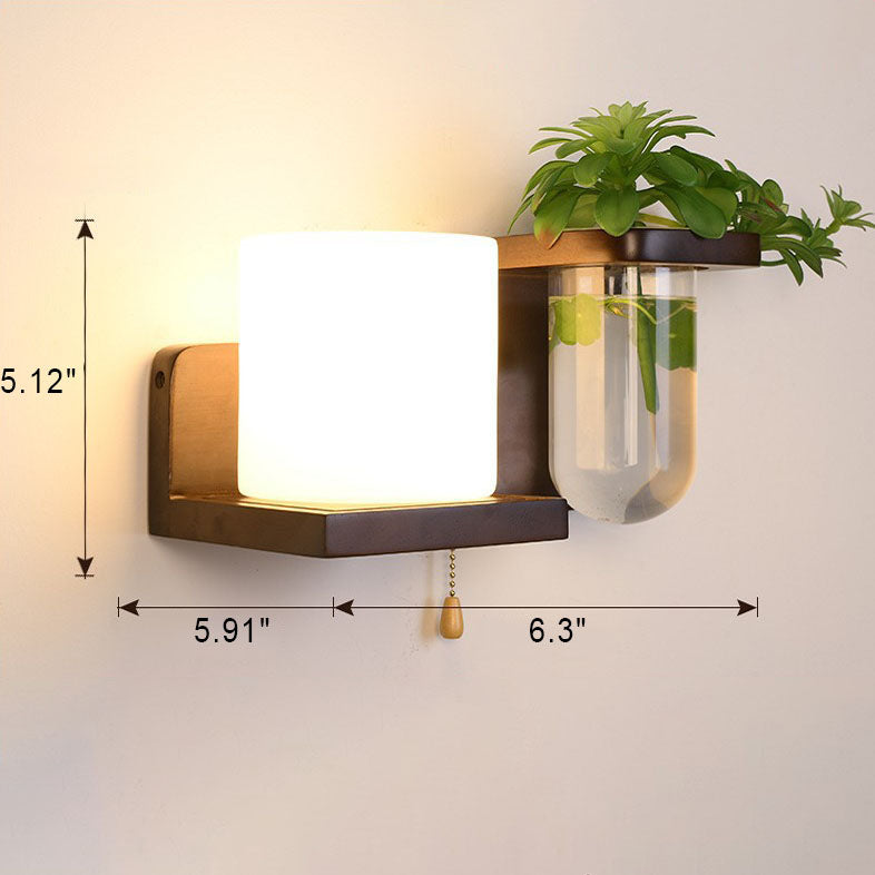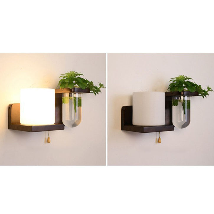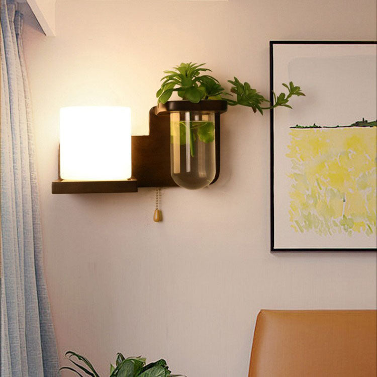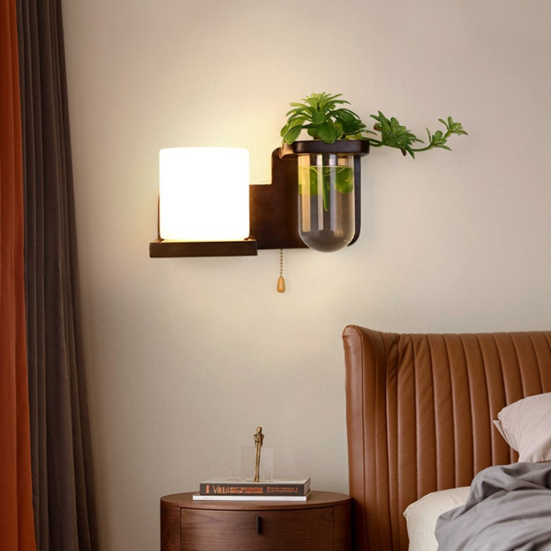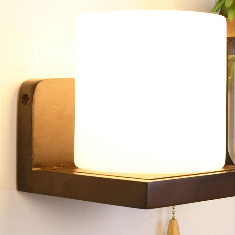 Nordic Creative Walnut Glass Pull Cord 1-Light Wall Sconce Lamp