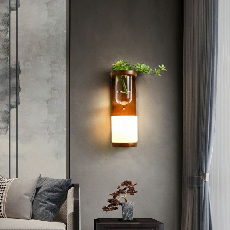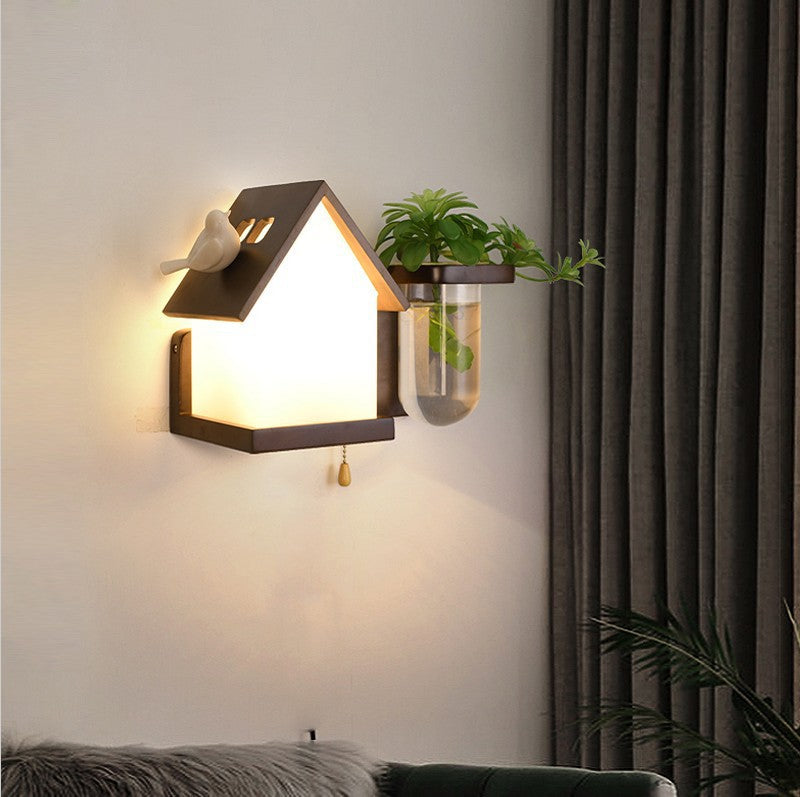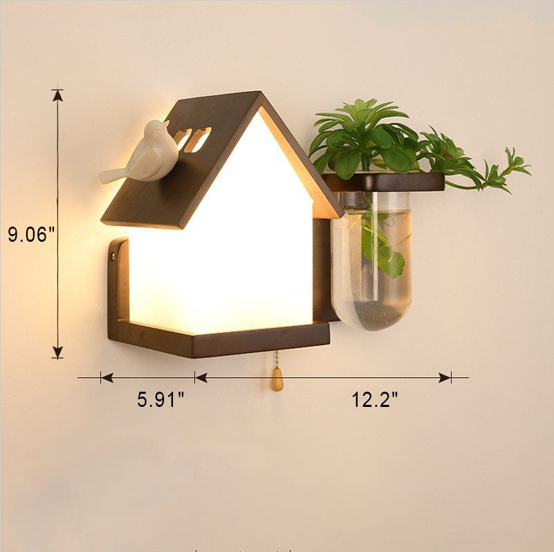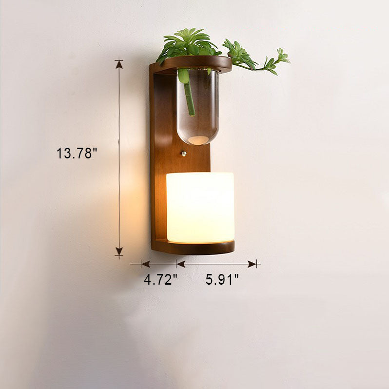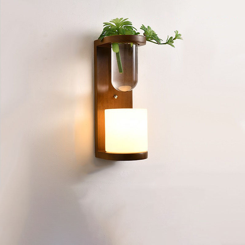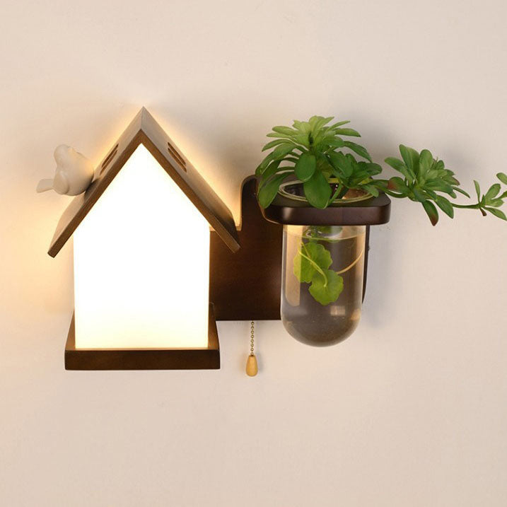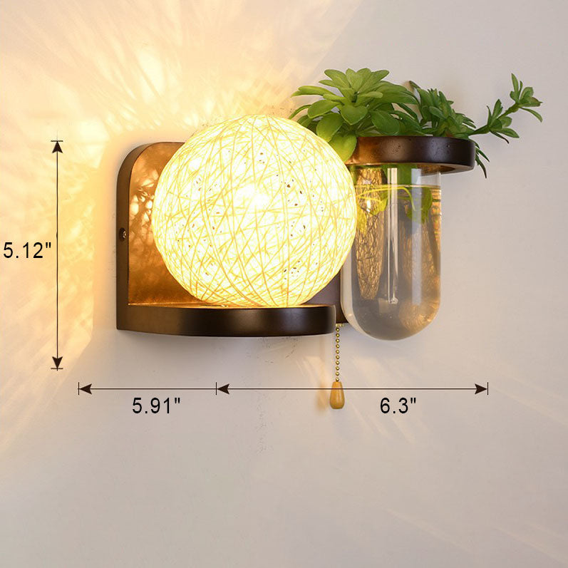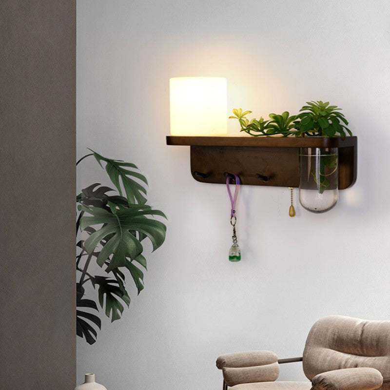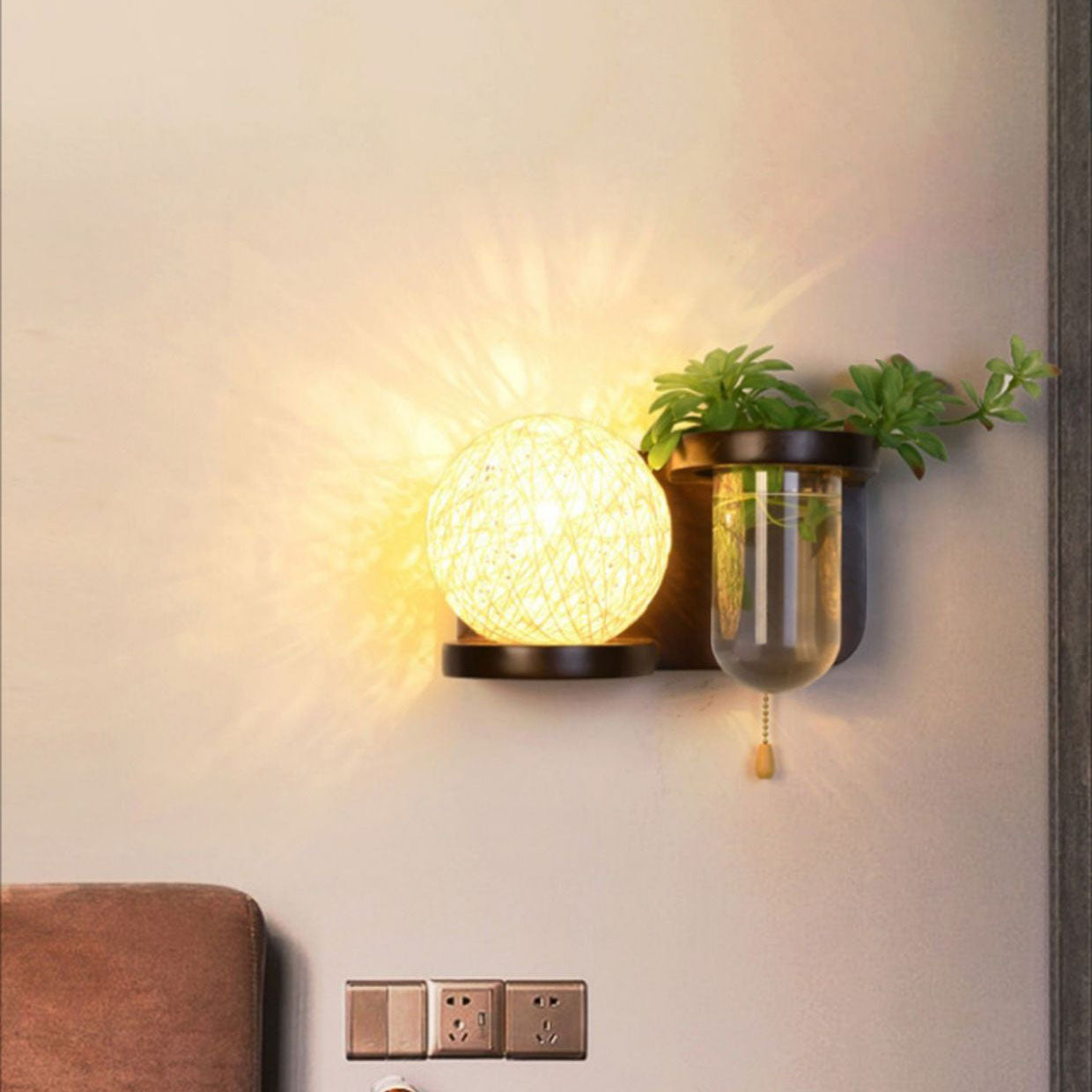 Nordic Creative Walnut Glass Pull Cord 1-Light Wall Sconce Lamp