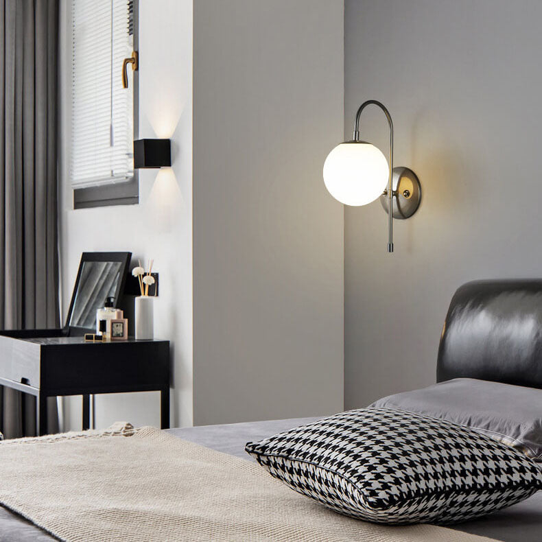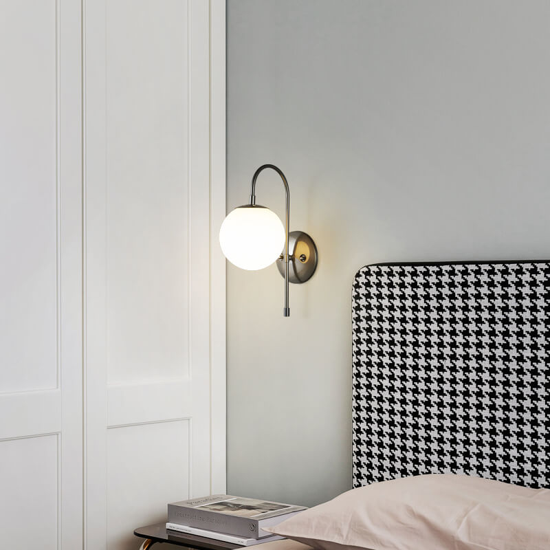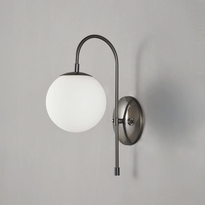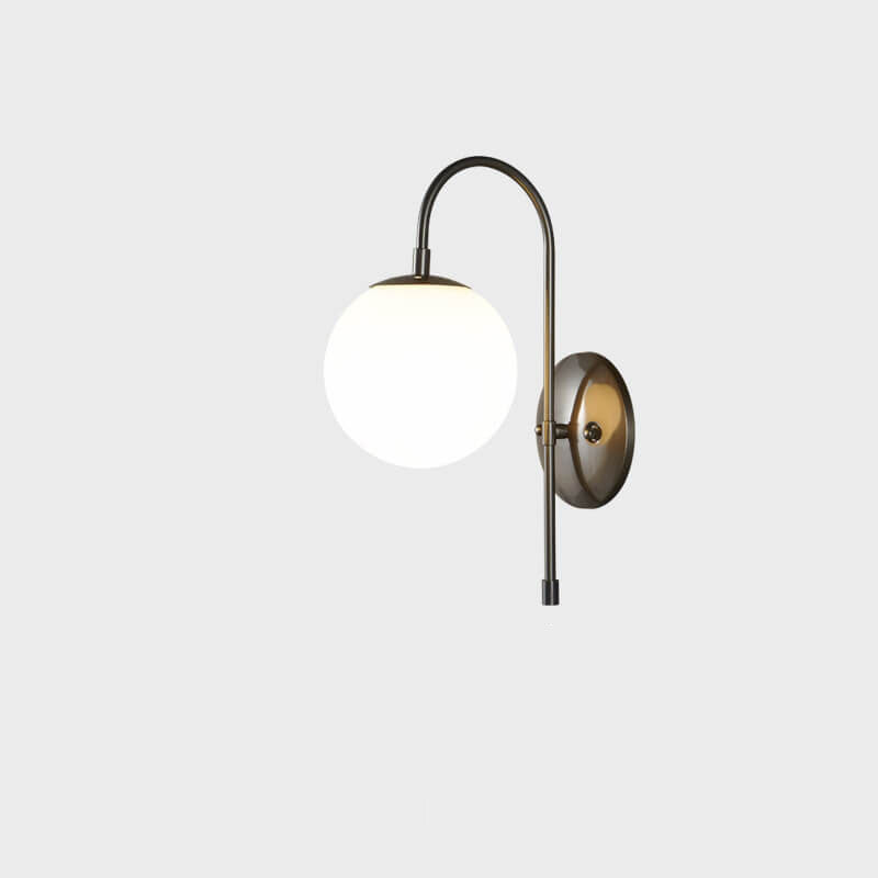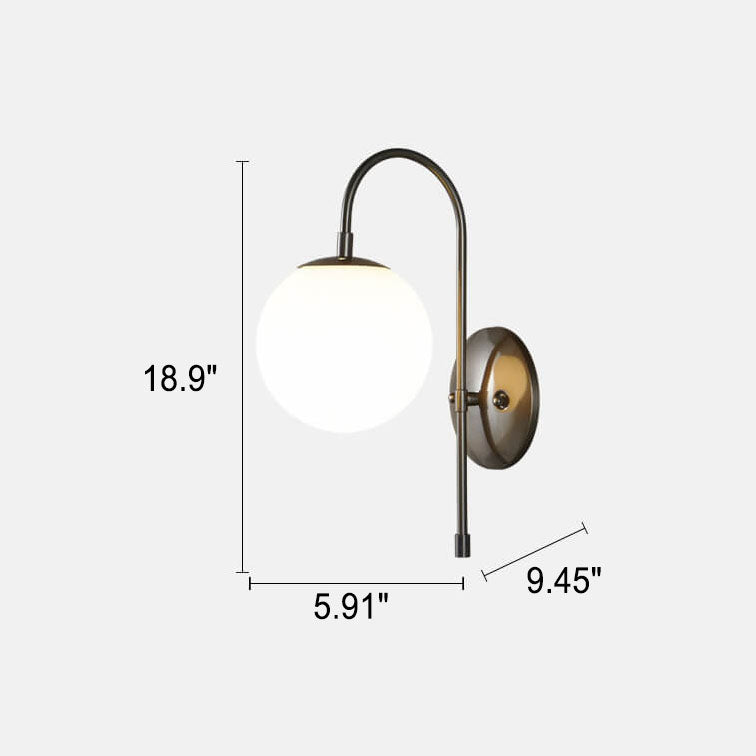 Nordic Light Luxury Glass Round Ball Copper Bent Arm 1-Light Wall Sconce Lamp