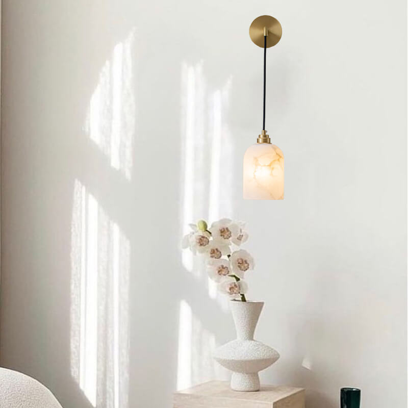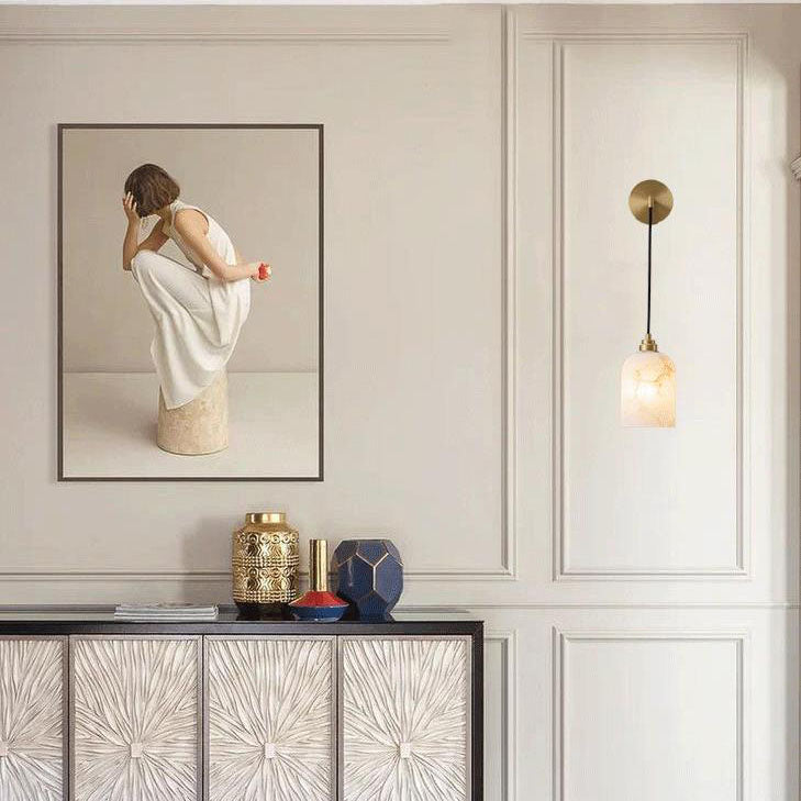 Nordic Light Luxury Marble Column Copper 1-Light Wall Sconce Lamp