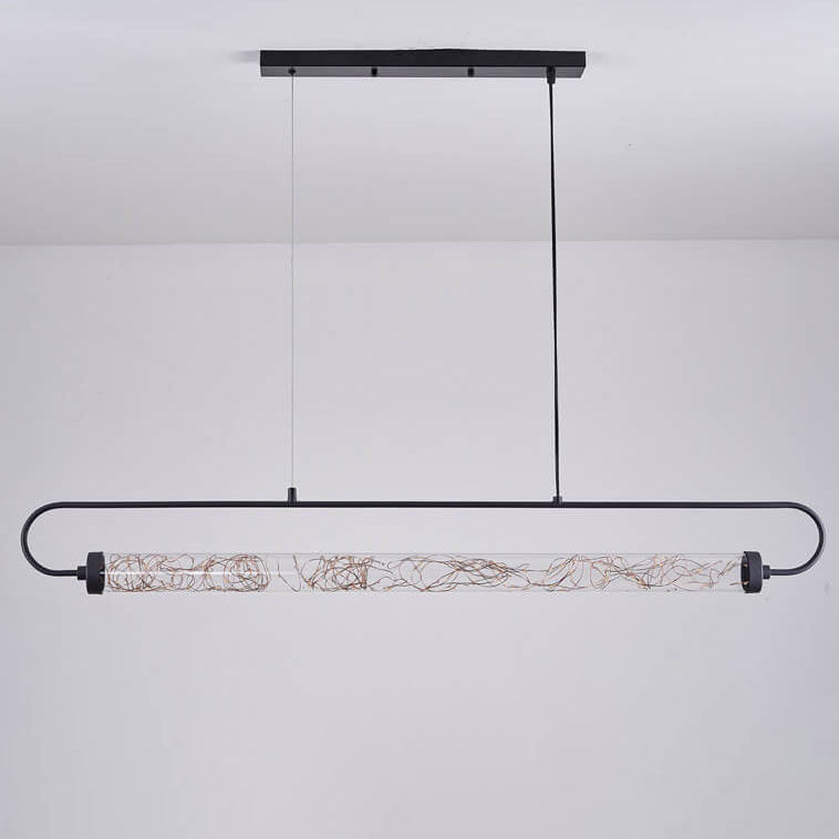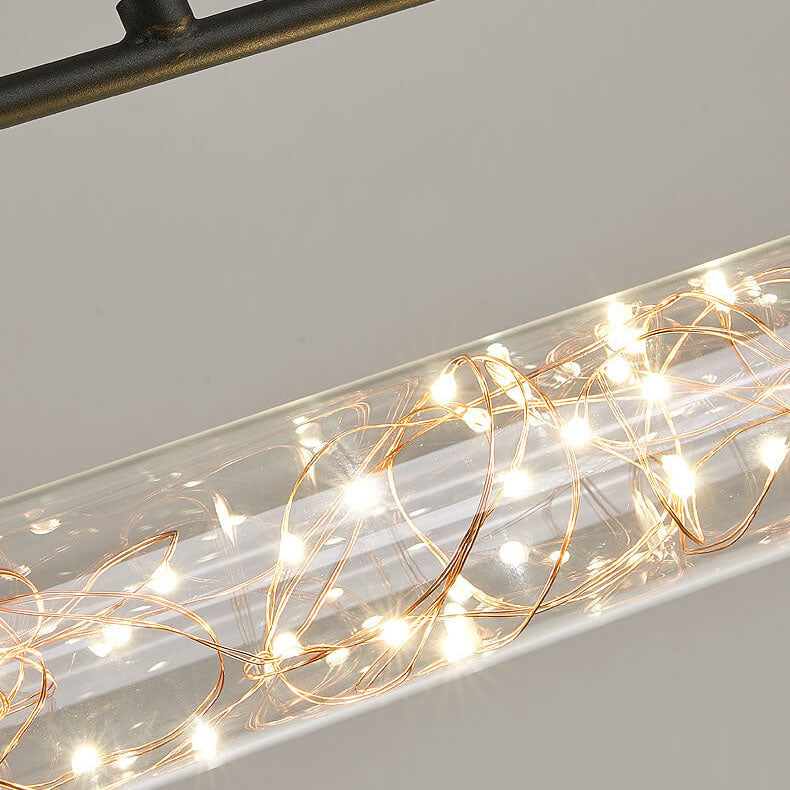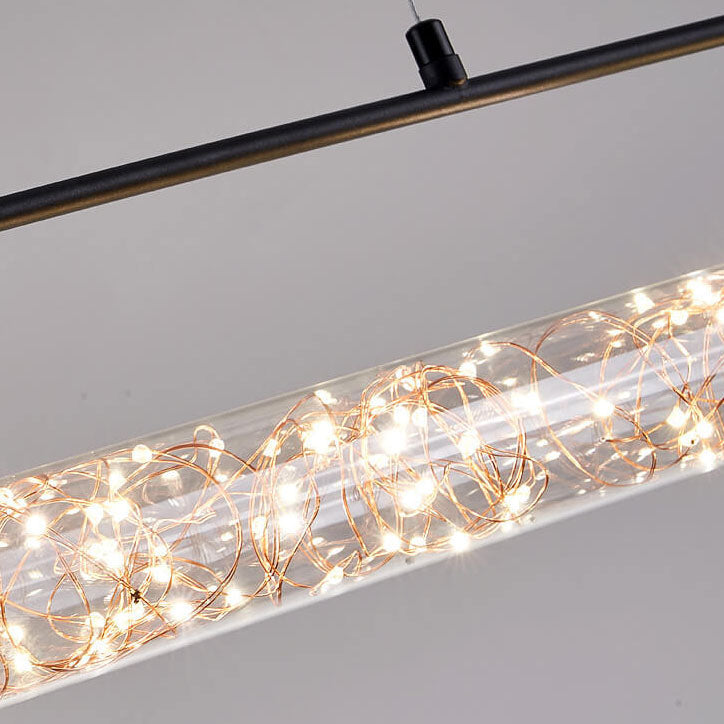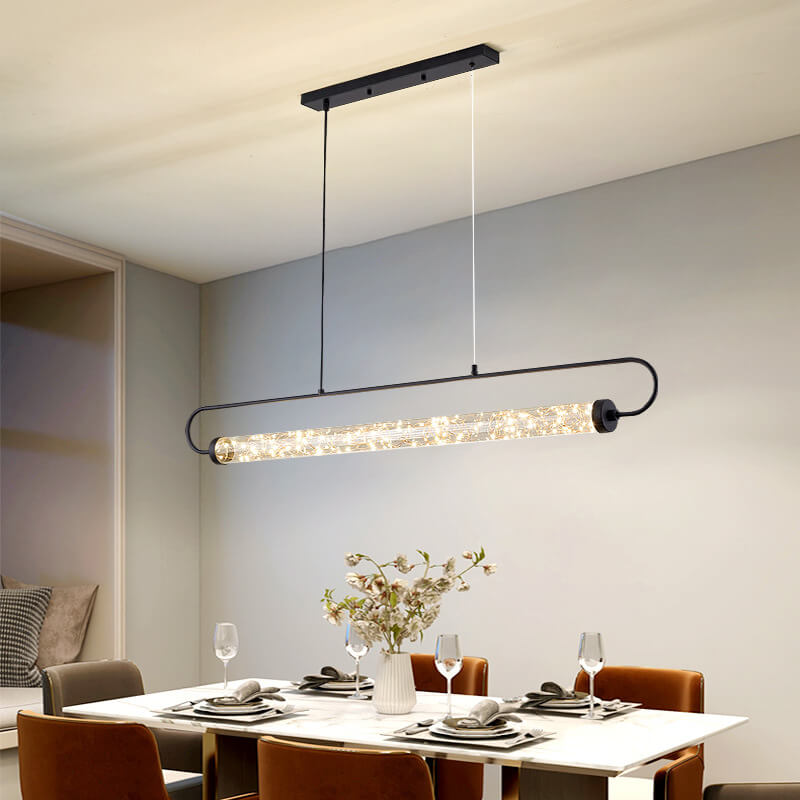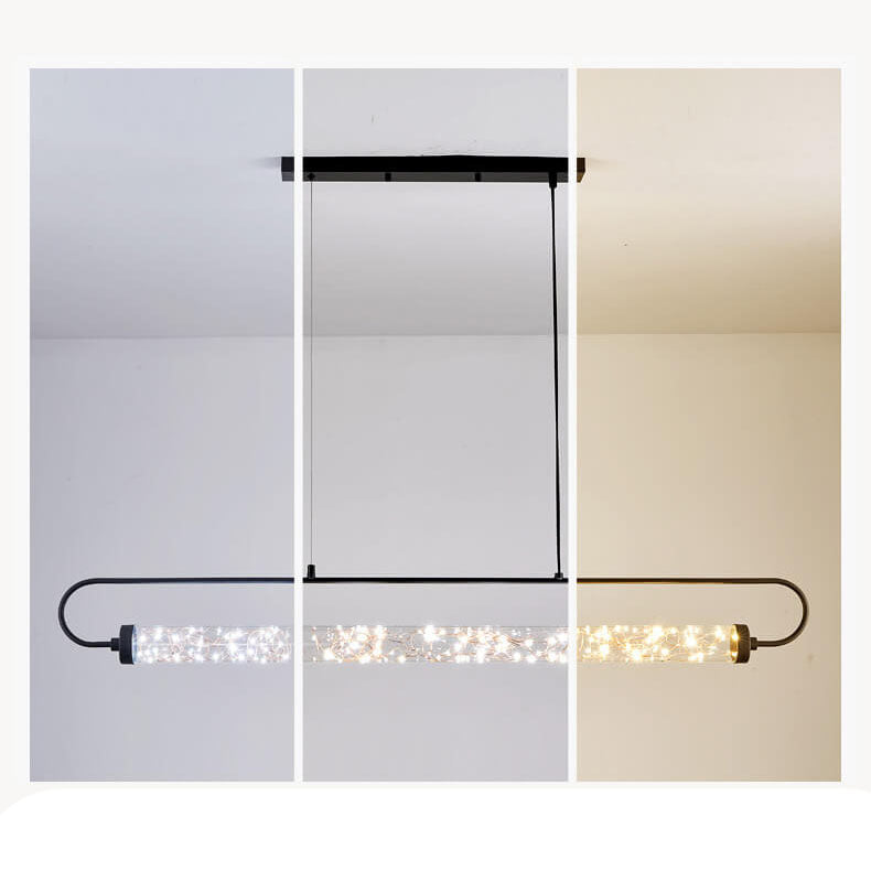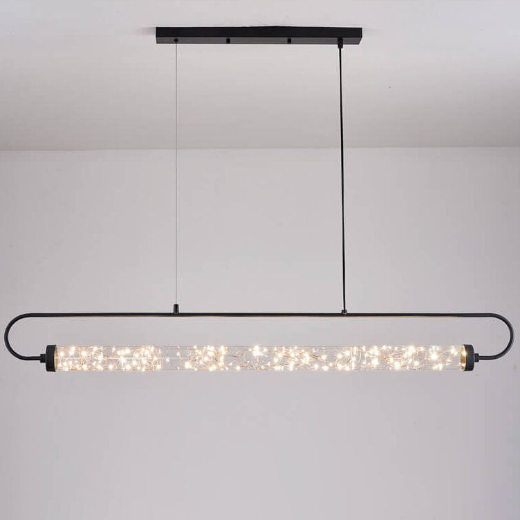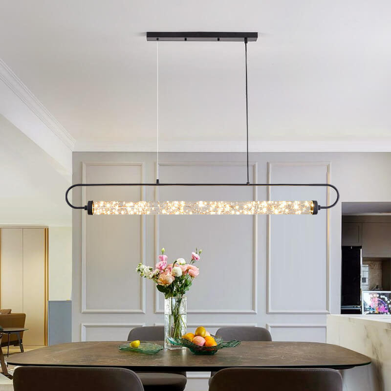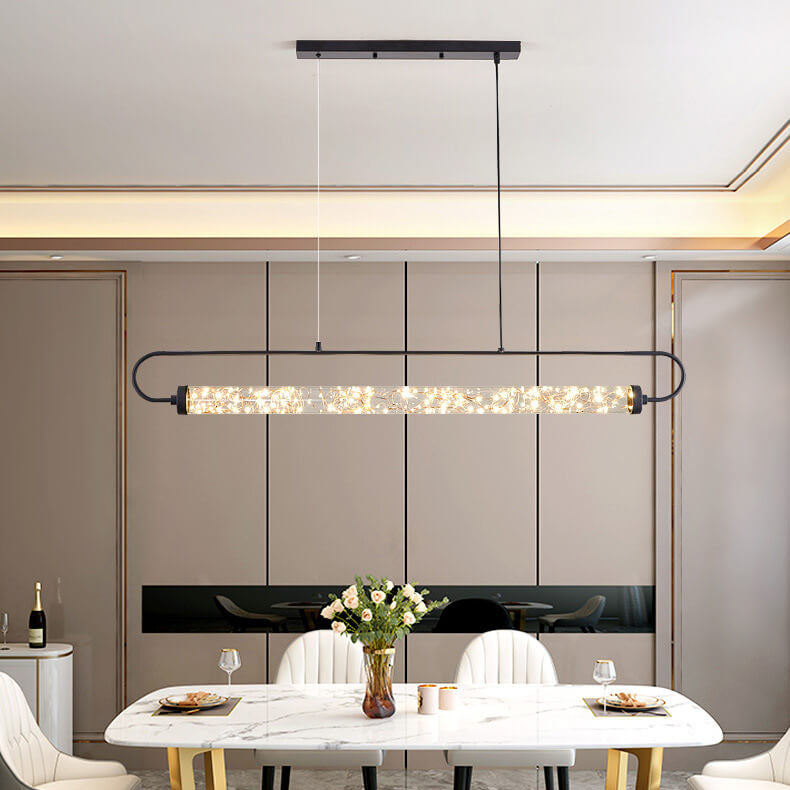 Nordic Light Luxury Starry Glass Long Strip LED Island Light Chandelier