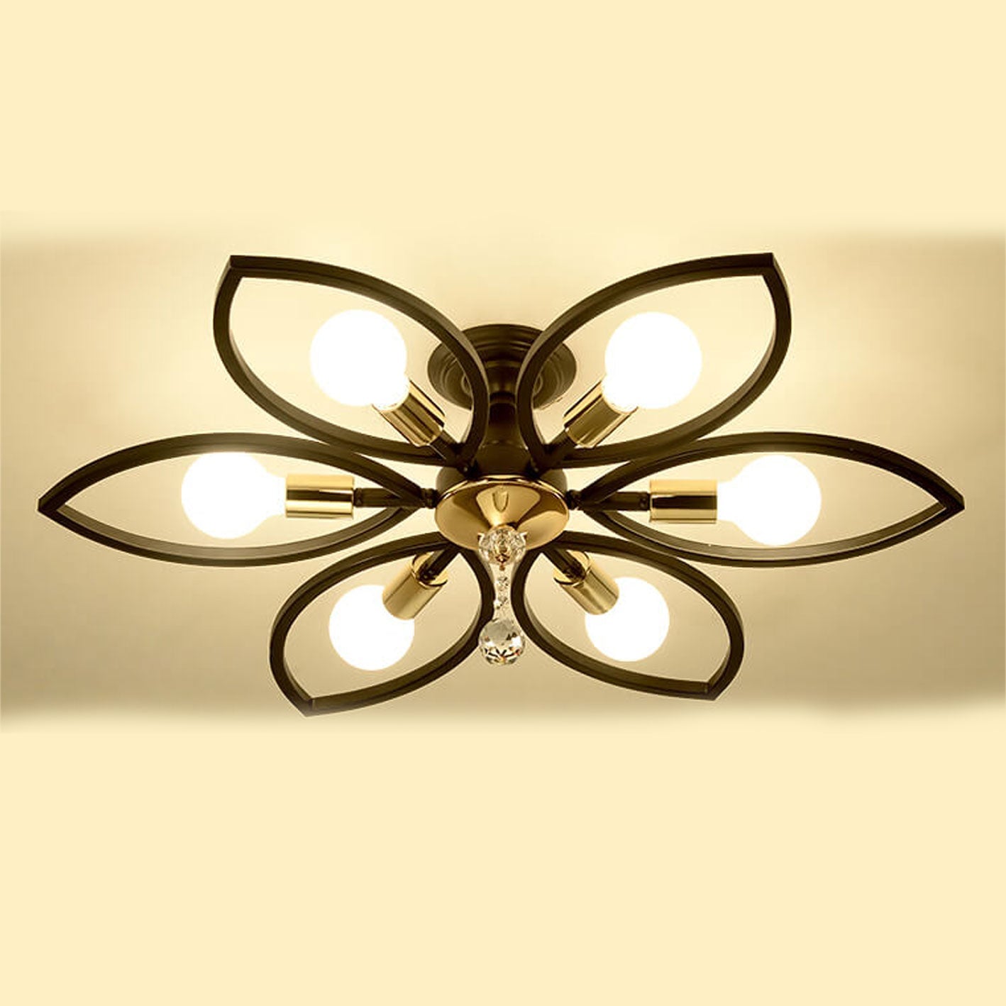 Nordic Light Luxury Wrought Iron Crystal 6/8-Light Flush Mount Ceiling Light