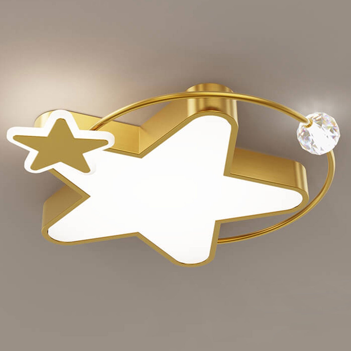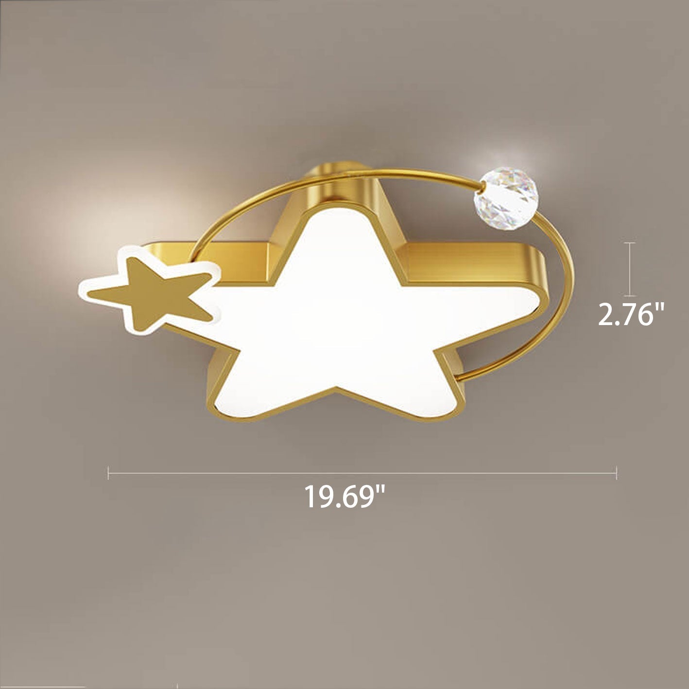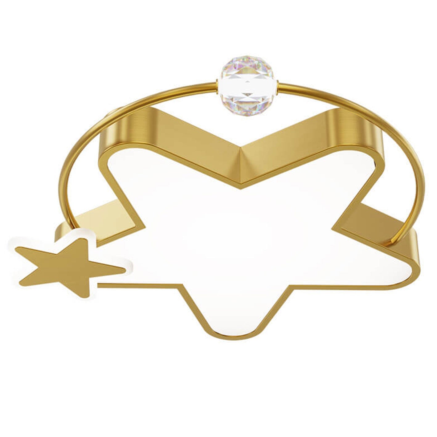 Nordic Luxury Star Moon Copper Crystal LED Flush Mount Ceiling Light