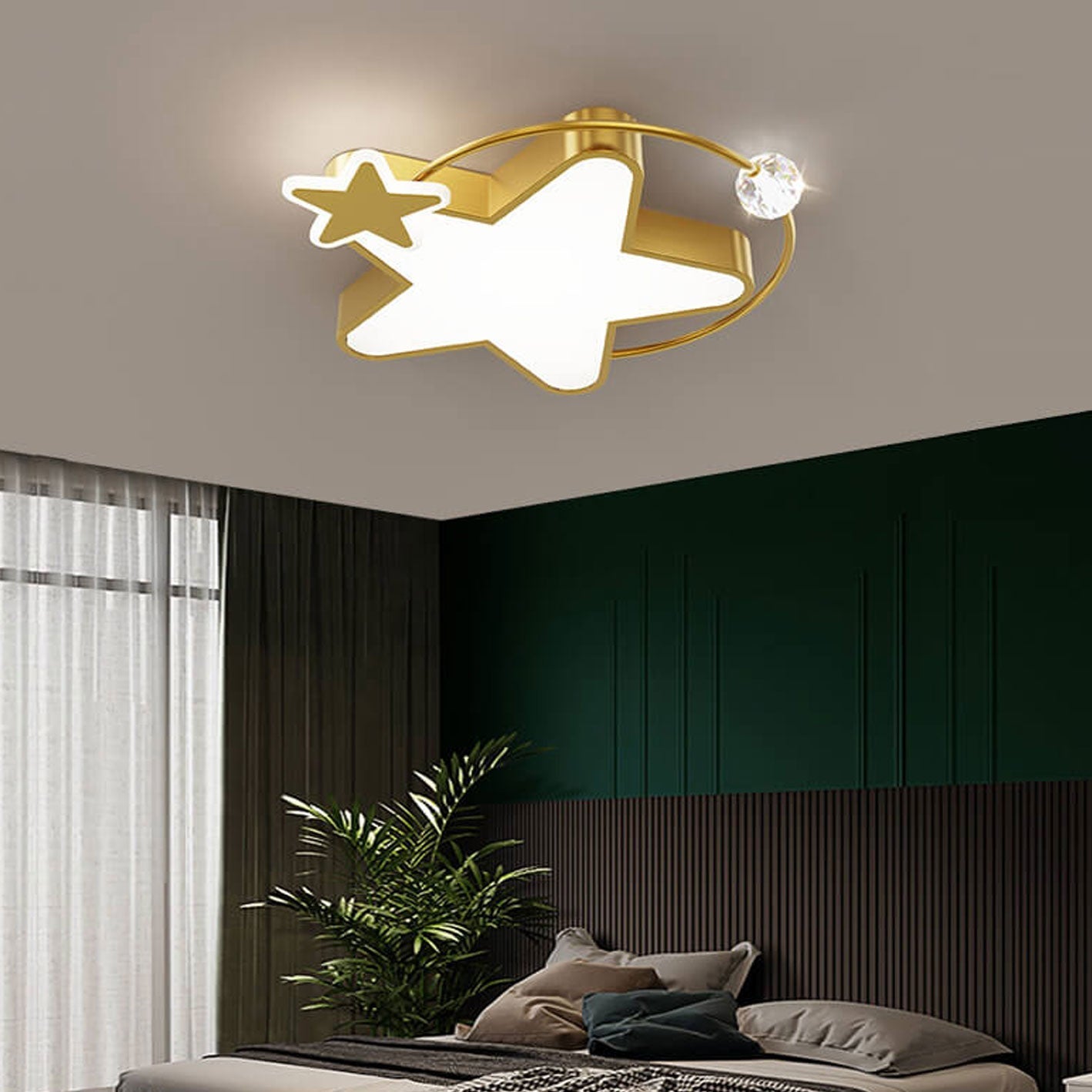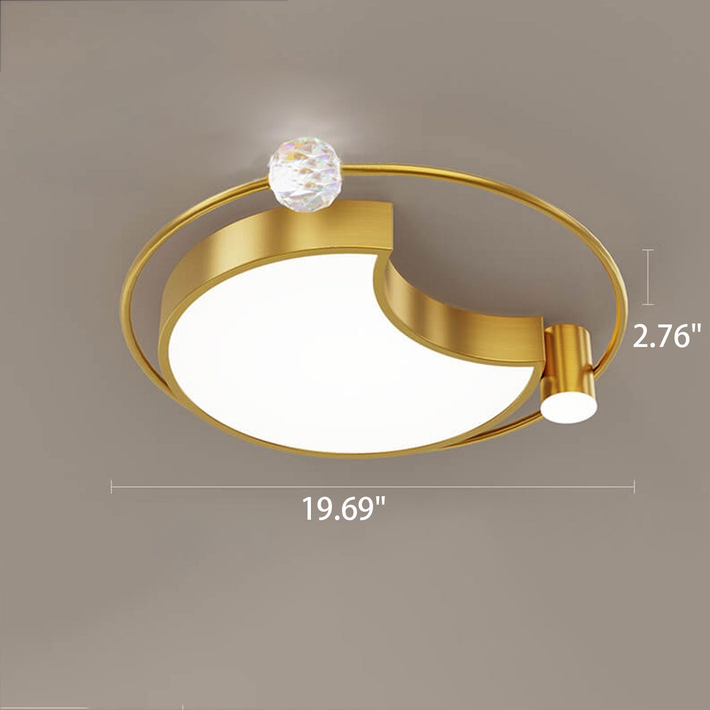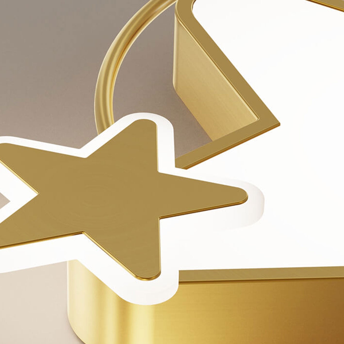Nordic Luxury Star Moon Copper Crystal LED Flush Mount Ceiling Light