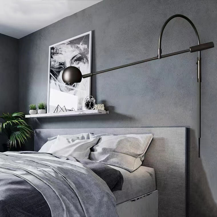 Nordic Minimalist Iron Rotatable Curved Arm 1-Light Wall Sconce Lamp